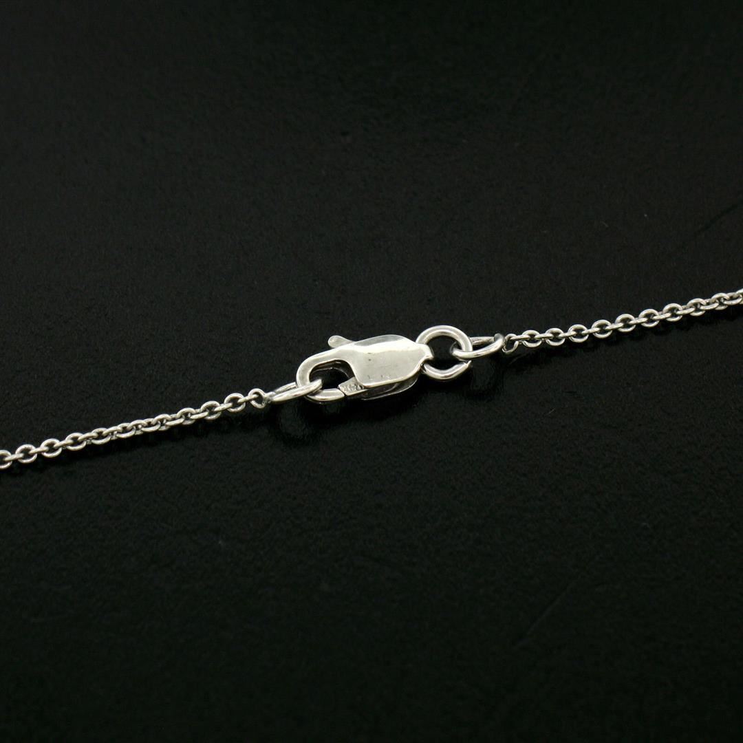 A solid 14k white gold pendant with a blue chalcedony (8.80x6.70mm; 3.20ct) accented by 30 natural white diamonds (G/H - SI1; 0.76ctw) and 24 natural black diamonds (0.35ctw). 16 inch cable link chain, 5.39 grams total weight, pendant measures 24.1x14.3mm.