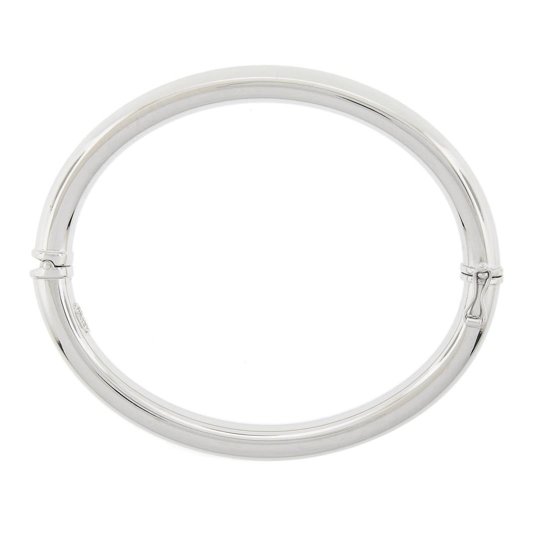 14K White Gold 6.75 5.9mm Classic Tube Polished Hinged Open Bangle Bracelet