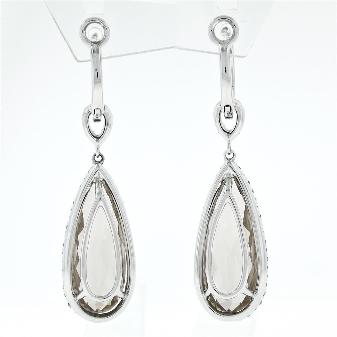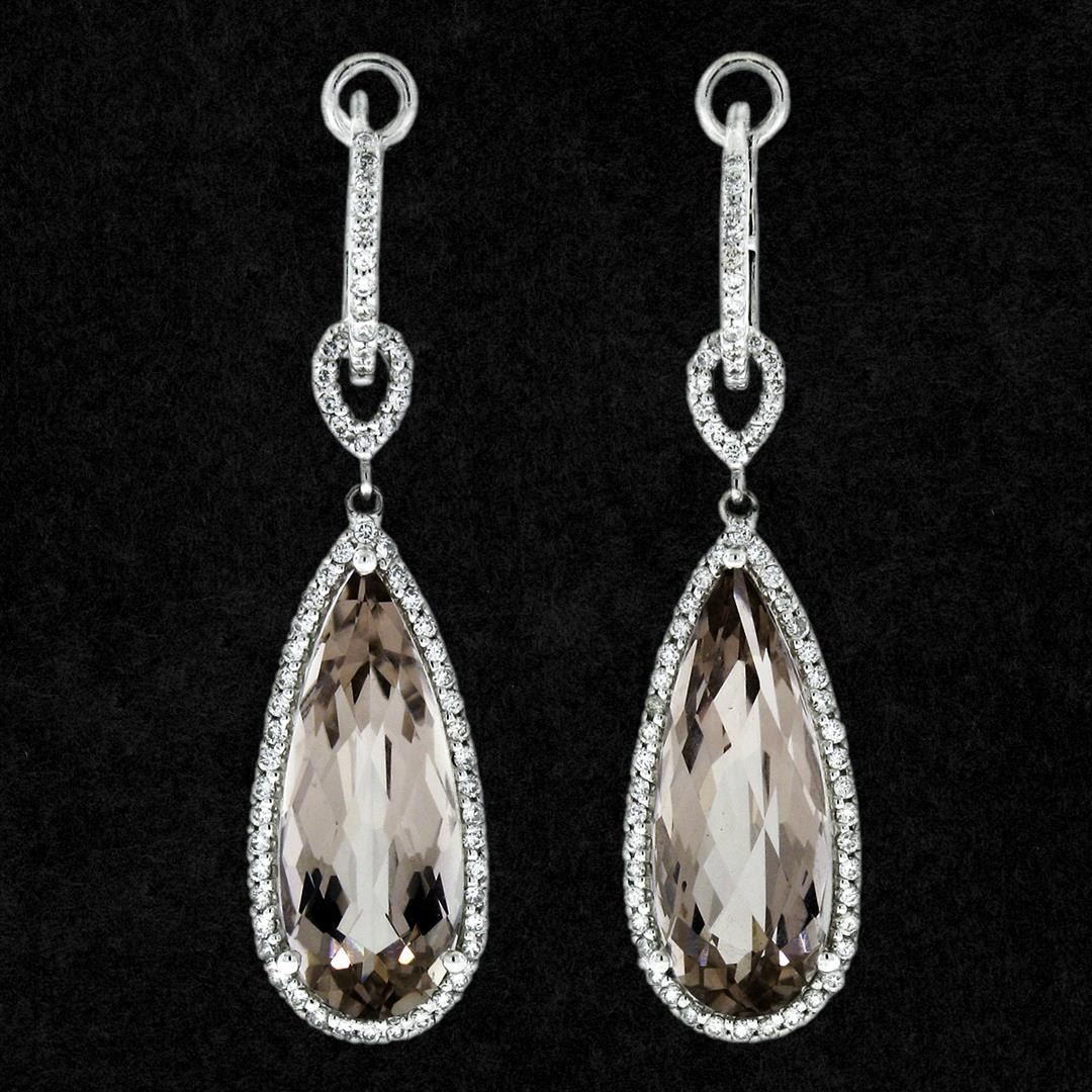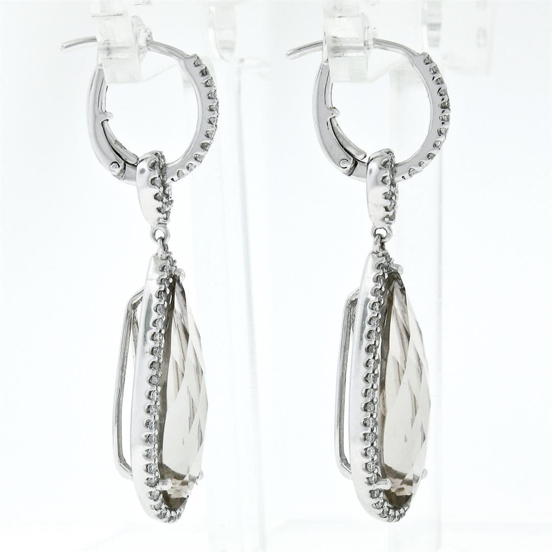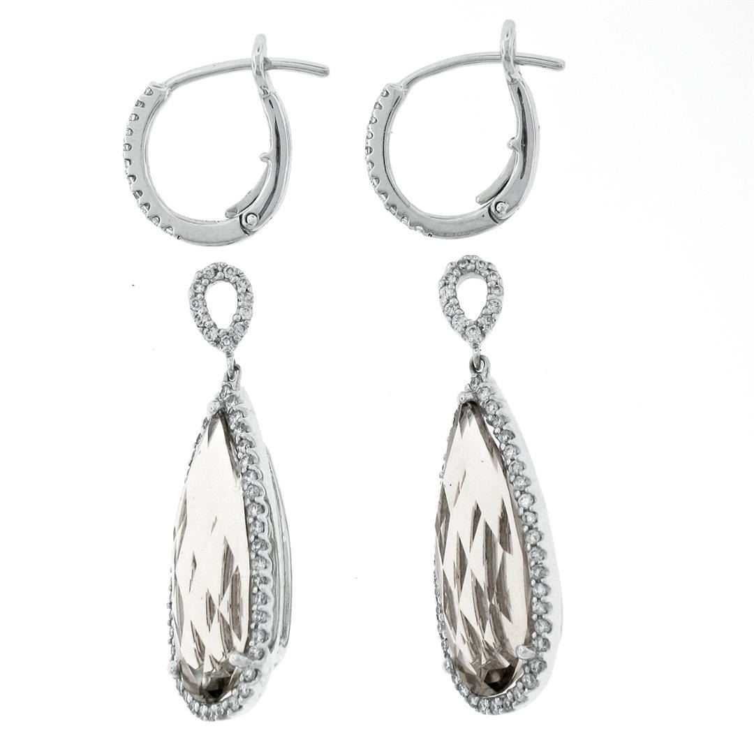 A new solid 14k white gold day night hoop dangle earrings, with 2 faceted pear shape natural quartz (18.4x7.4mm), and 128 round brilliant cut natural diamonds (G/H- VS2/SI1; 0.48ctw). The earrings measure approximately 38.0x9.90mm and weigh a total of 6.27 grams.