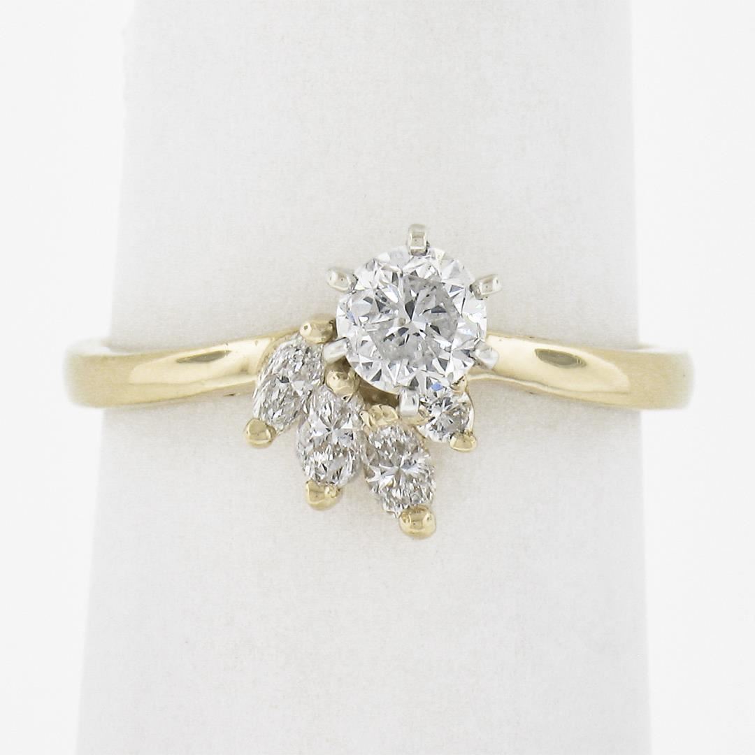 14K Yellow Gold 0.67ctw Prong Round Solitaire w/ Marquise Diamond Spray Ring