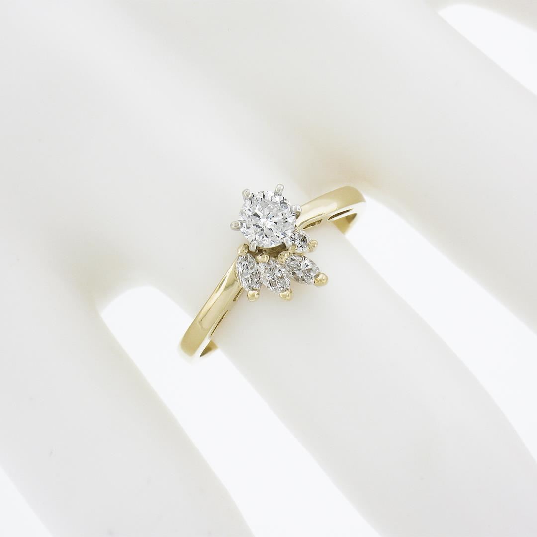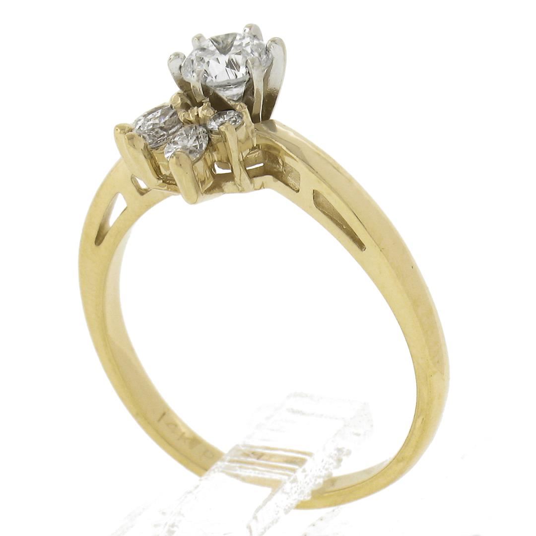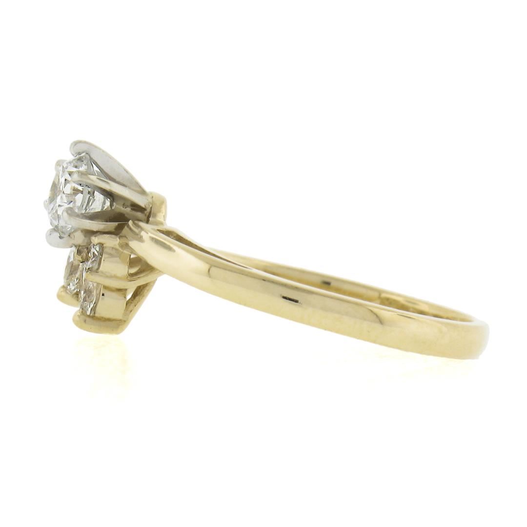 14K Yellow Gold 0.67ctw Prong Round Solitaire w/ Marquise Diamond Spray Ring