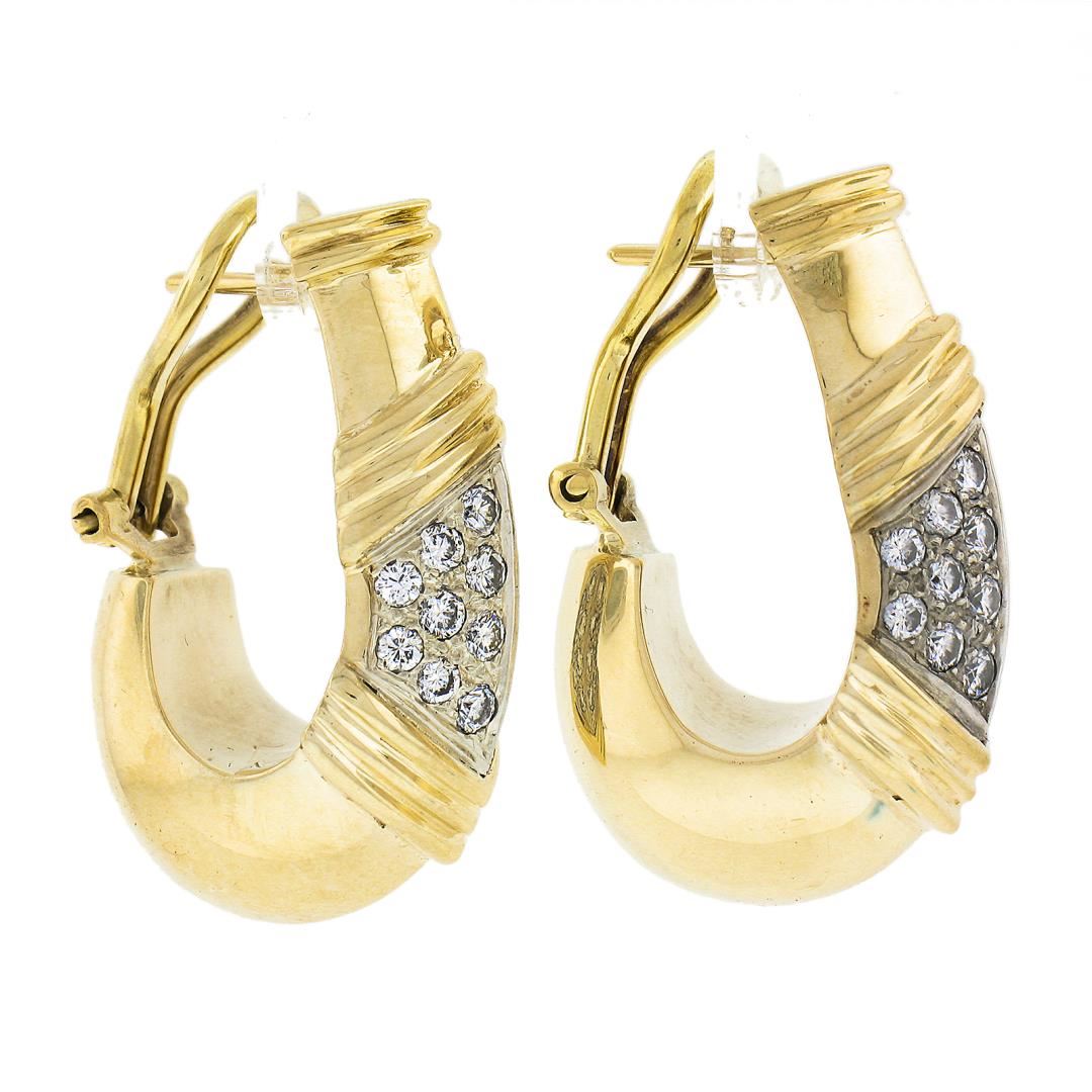 a solid 14k yellow gold cuff earrings, with 36 round cut natural diamonds (G/H - VS1/VS2 w/ a few SI ; 0.80ctw). The earrings measure approximately 28.7x11.8mm and weigh a total of 16.53 grams.