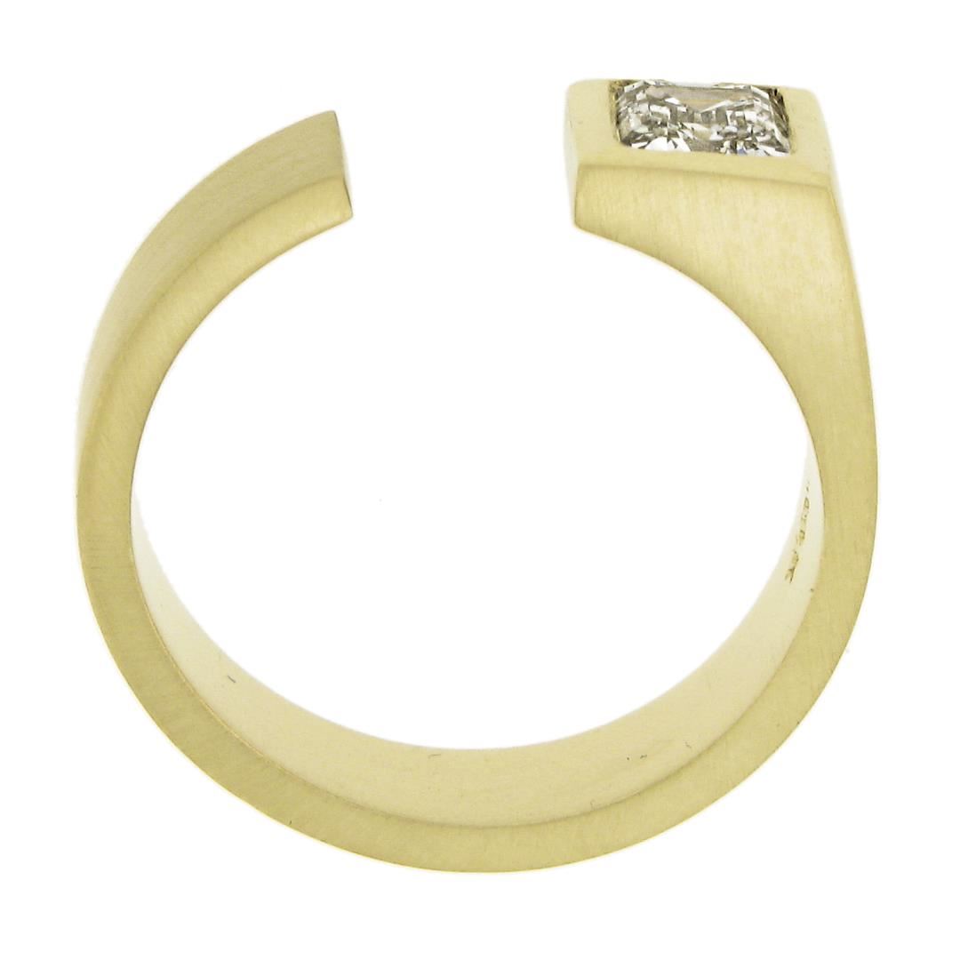 a solid 14k yellow gold open wrap ring, with GIA graded emerald cut natural diamond ( K - SI2 ; 0.91ct). The ring is size 7.0, weighs a total of 7.78 grams, and measures 7.6mm wide. Comes with all original relevant certifications.