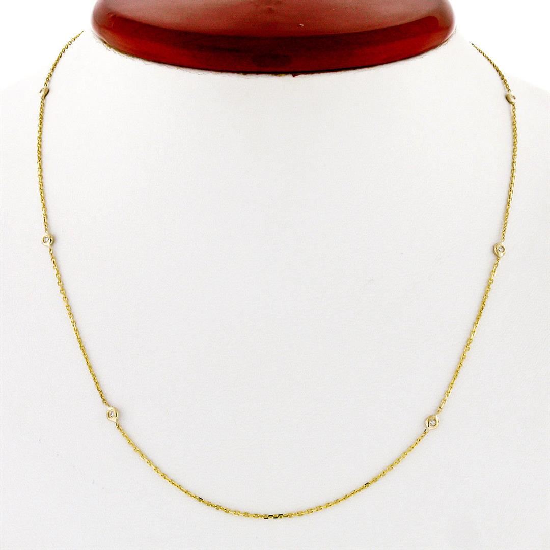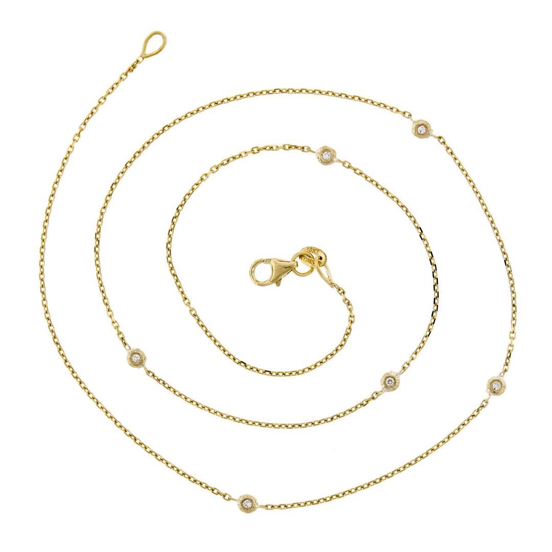 A new solid 14k yellow gold by the yard chain necklace, with 6 round brilliant cut naural diamonds (G/H- VS2; 0.12ctw). 16 inch cable link chain, 2.06 grams total weight.