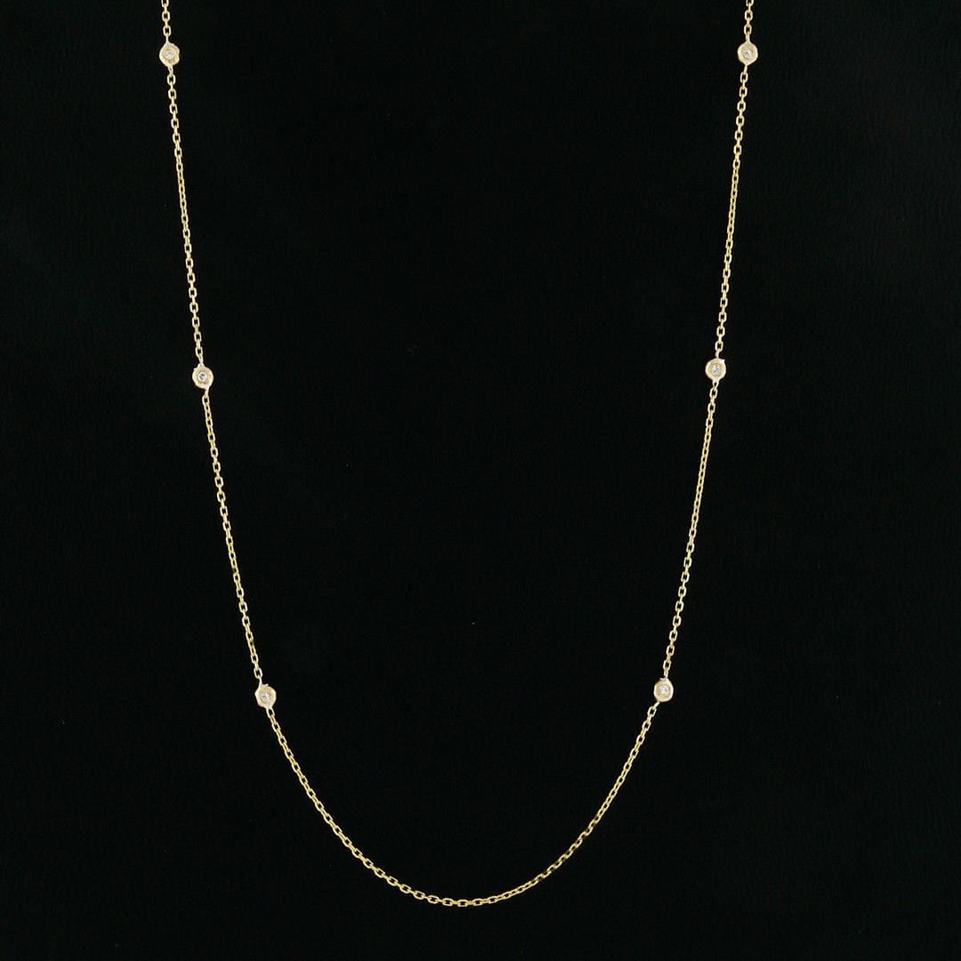 A new solid 14k yellow gold by the yard chain necklace, with 6 round brilliant cut naural diamonds (G/H- VS2; 0.12ctw). 16 inch cable link chain, 2.06 grams total weight.