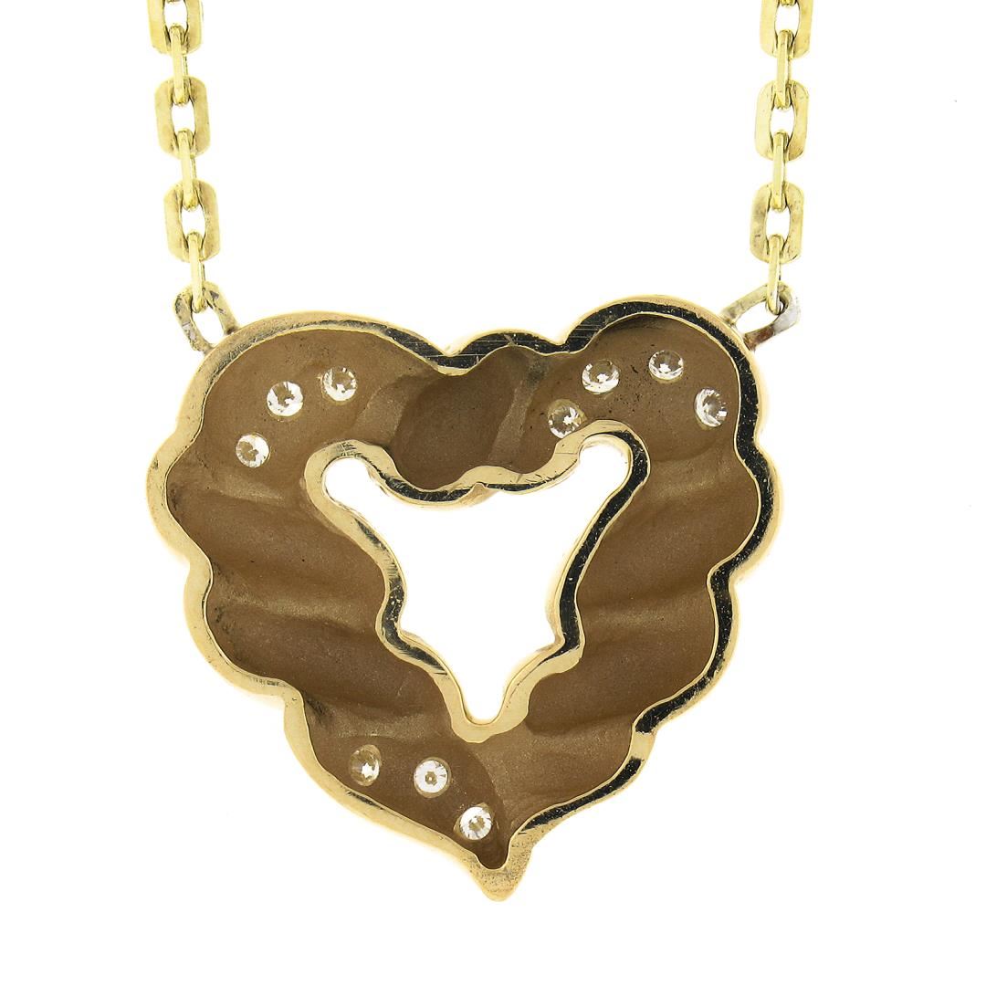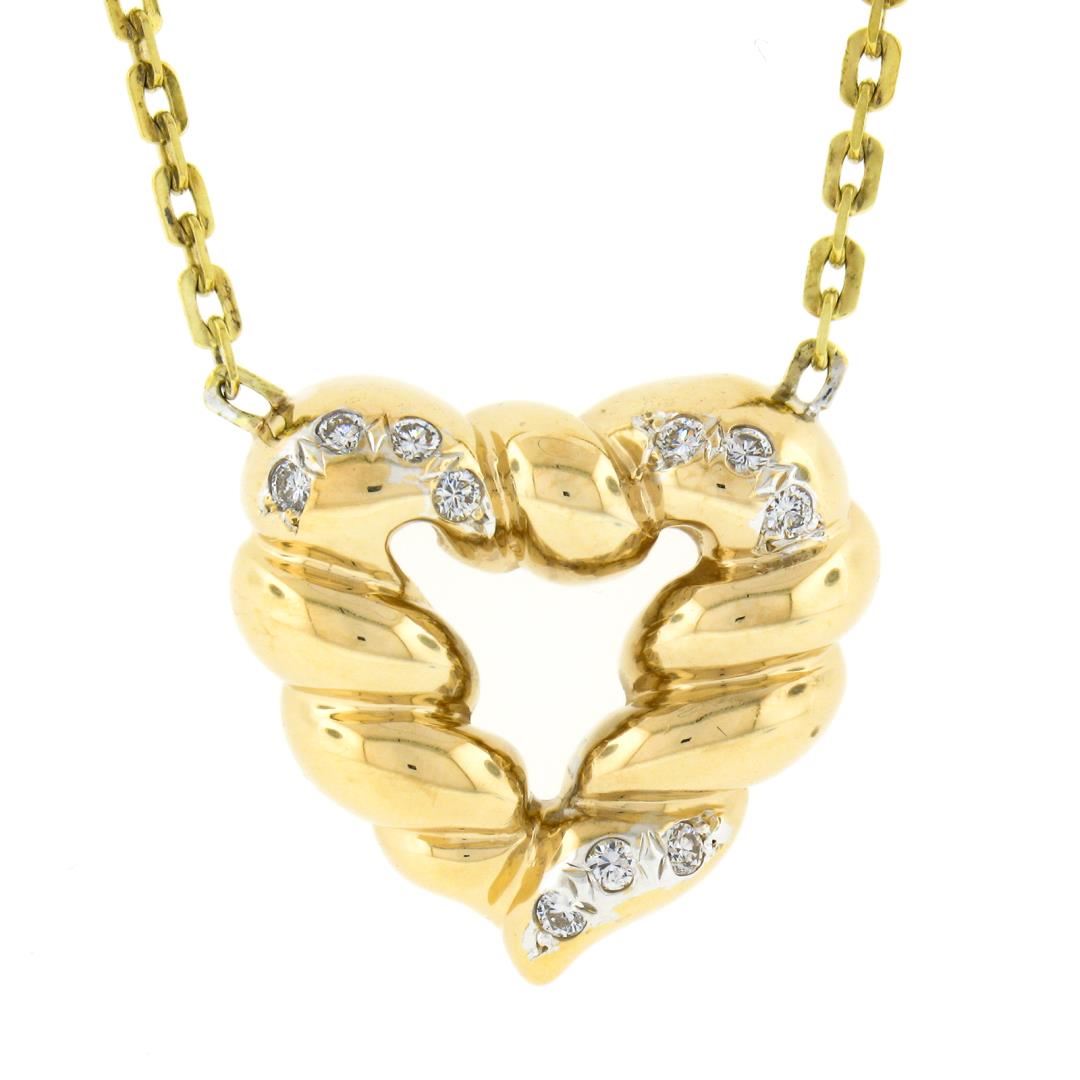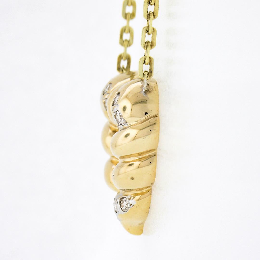 A solid 14k yellow gold pendant necklace, with 10 round brilliant cut natural diamonds (G/H - VS1/VS2 ; 0.30ctw). 15 inch cable link chain, 11.71 grams total weight, pendant measures 21.9x23.4mm.