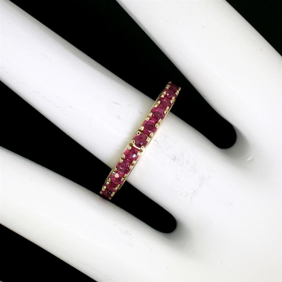 14K Yellow Gold 2.75 ctw 25 Prong Set Blood Red Ruby Eternity Band Ring Size 6
