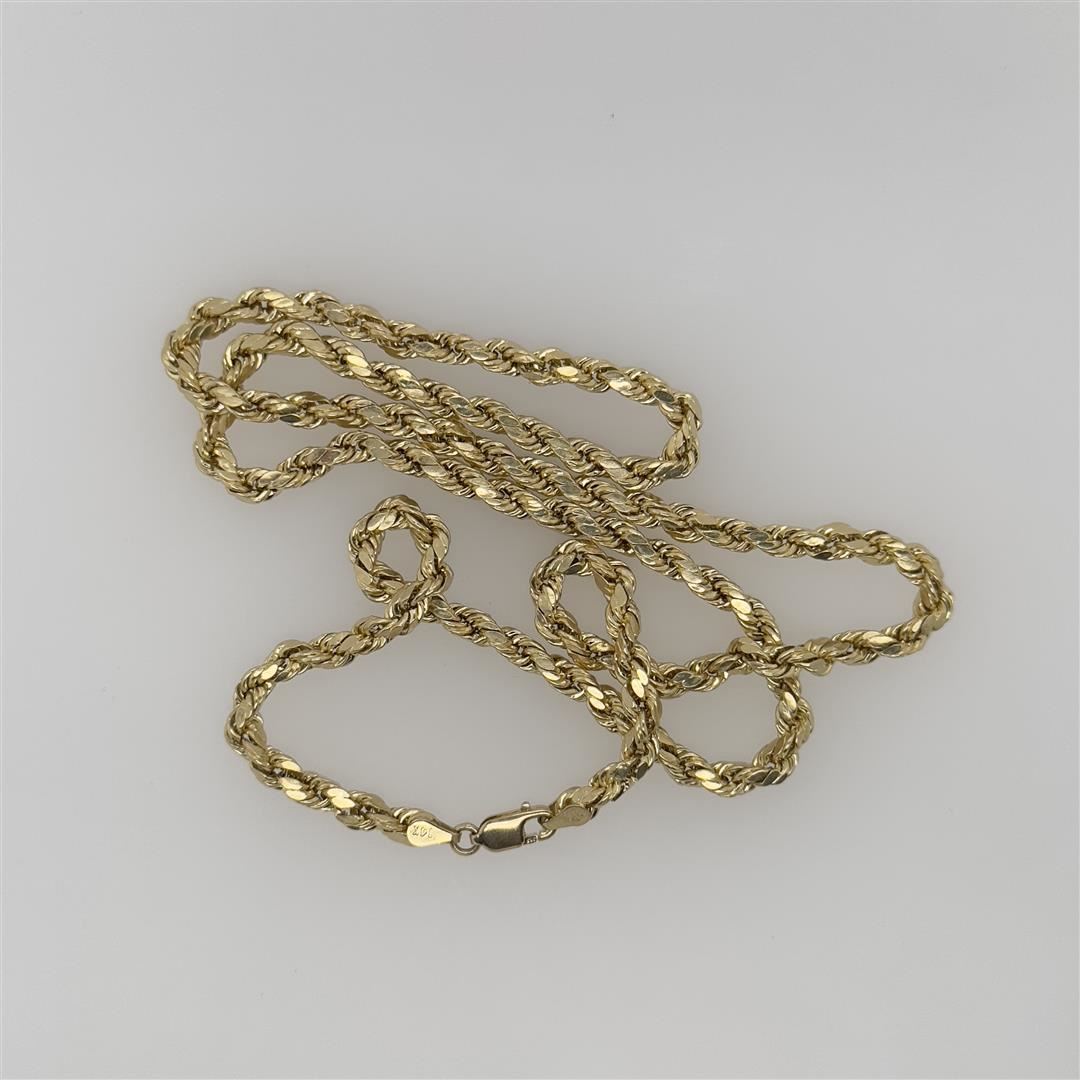 One 14K Yellow Gold Chain. Total weight of chain is 7.8 grams. 21 inches in length.