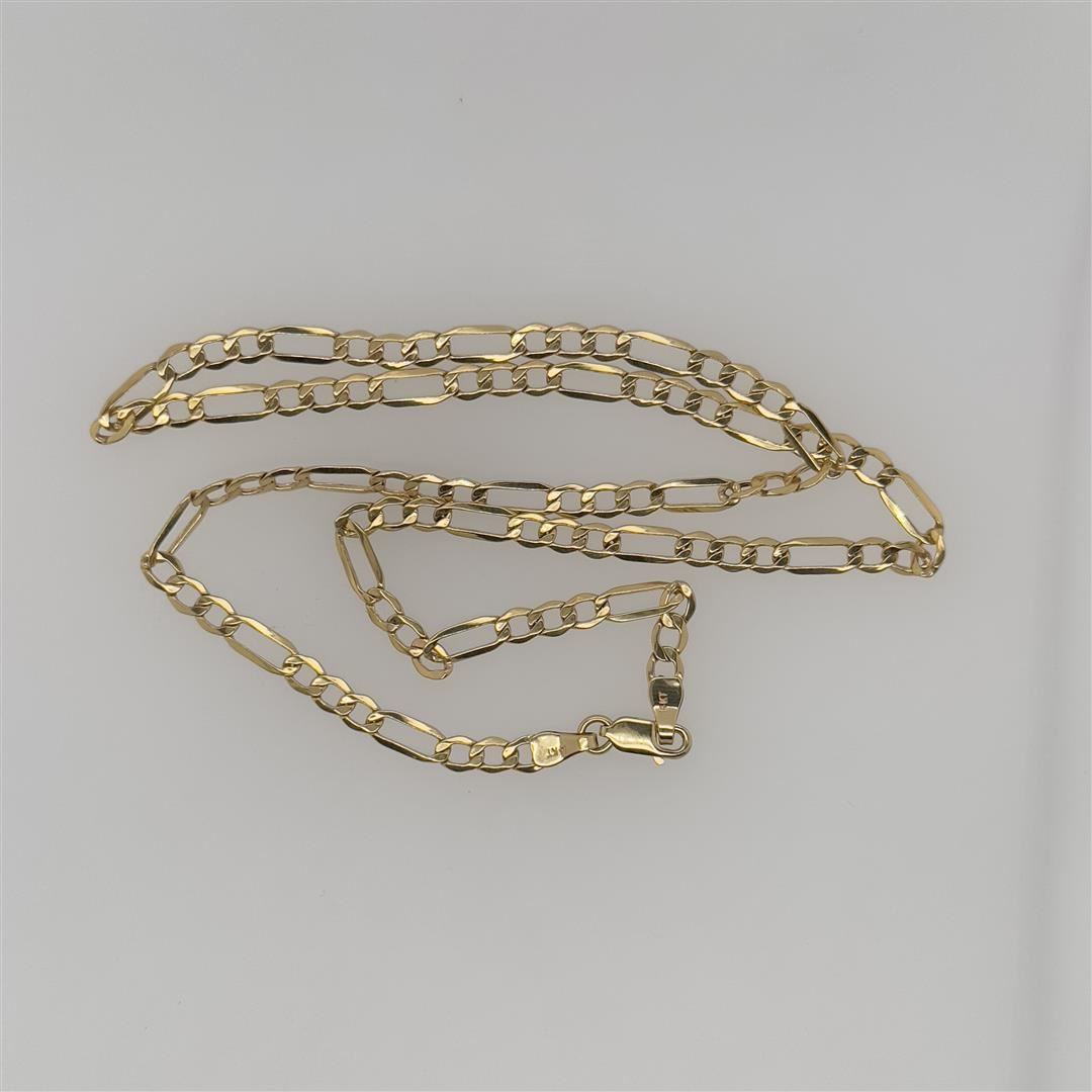 One 14K Yellow Gold Chain. Total weight of chain is 14.1 grams. 23 inches in length.