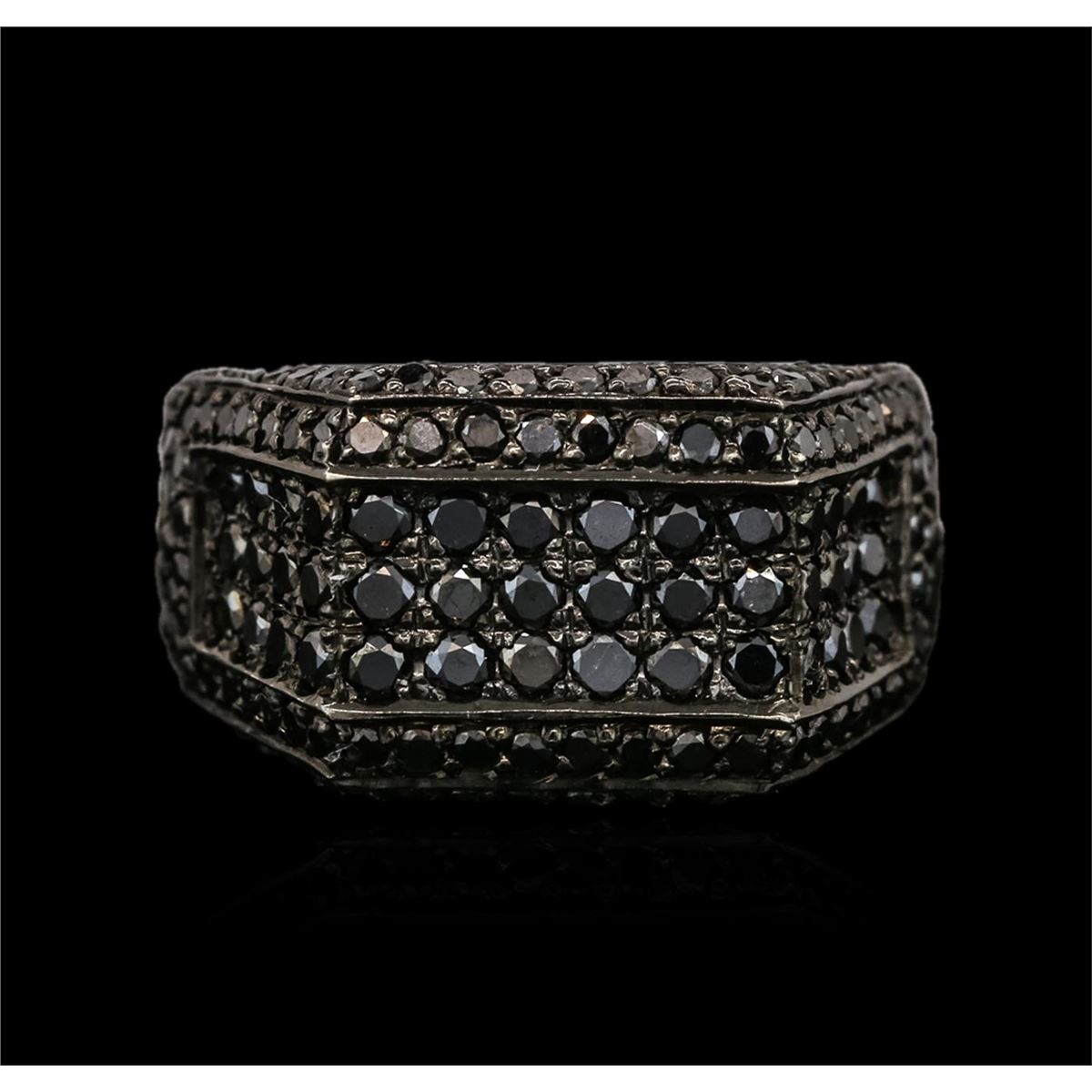 One electronically tested 14KT black gold men's combination cast & assembled diamond ring with a bright polish finish. Identified with markings of "14K". Condition is new. Containing: One Hundred Sixty-Five prong set round brilliant cut diamonds, measuring 2.00 - 1.50 x 1.05mm (depth est.) approximate total weight of 165 Stones = 2.40ct. Cut is Good. All diamonds are graded in the mounting, unless otherwise stated. Total Weight of Diamonds 2.40ct. Total Weight of Ring 13.50 grams. GGL Appraised at $5,410.00.