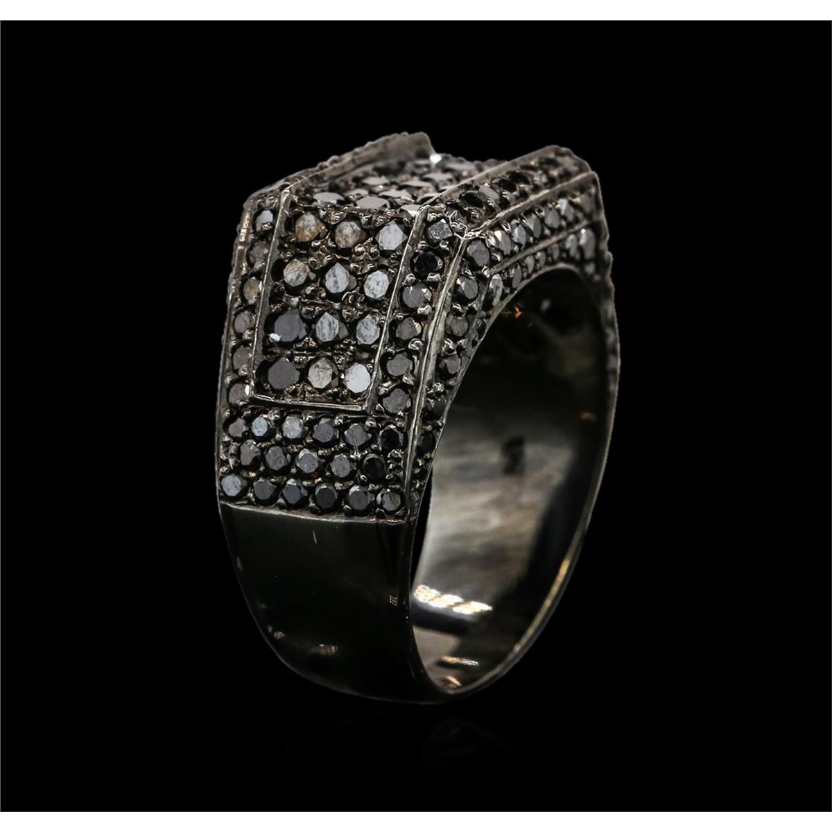 One electronically tested 14KT black gold men's combination cast & assembled diamond ring with a bright polish finish. Identified with markings of "14K". Condition is new. Containing: One Hundred Sixty-Five prong set round brilliant cut diamonds, measuring 2.00 - 1.50 x 1.05mm (depth est.) approximate total weight of 165 Stones = 2.40ct. Cut is Good. All diamonds are graded in the mounting, unless otherwise stated. Total Weight of Diamonds 2.40ct. Total Weight of Ring 13.50 grams. GGL Appraised at $5,410.00.