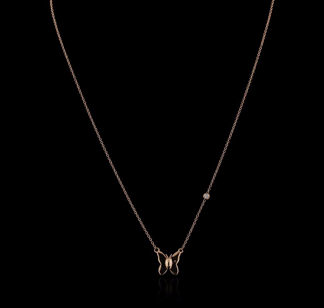 One butterfly necklace featuring: 14KT rose gold weighing 2.03 grams containing one diamond with a total weight of 0.03ct.