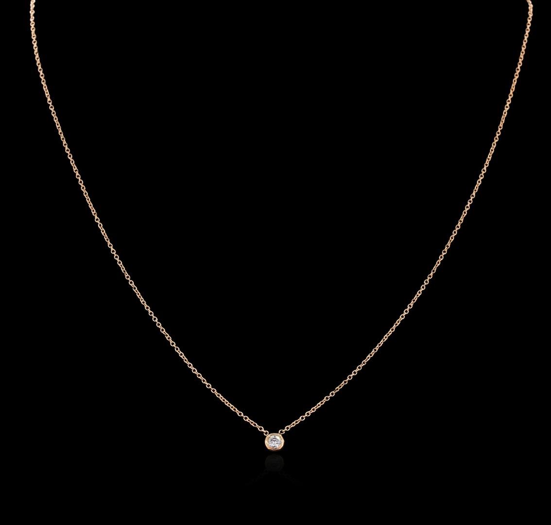 One solitaire necklace featuring: 14KT rose gold weighing 1.68 grams containing one diamond with a total weight of 0.09ct.