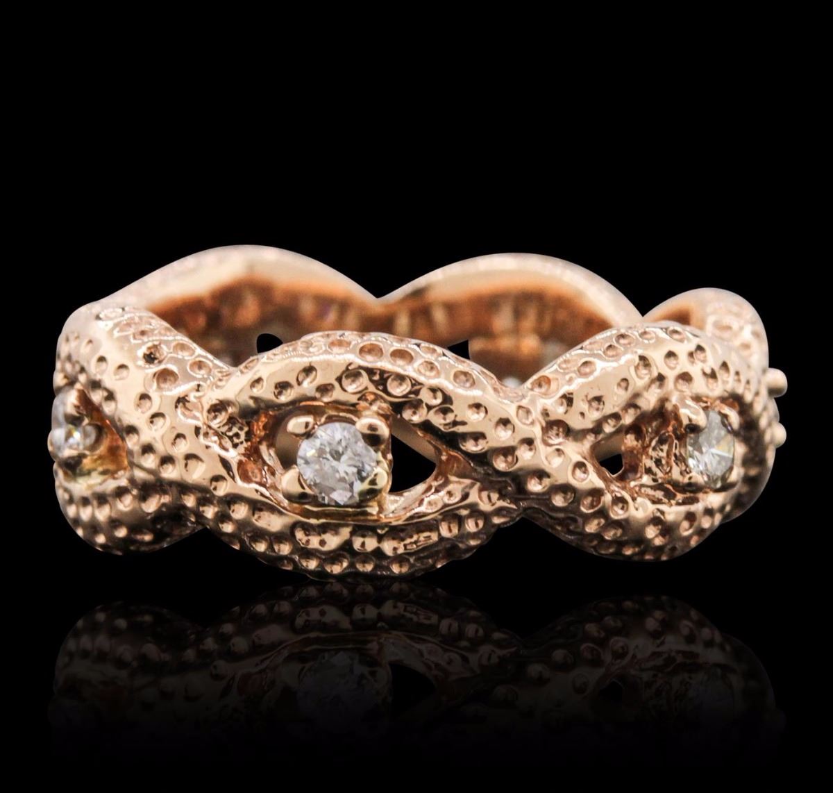 One Ring featuring: 14KT Rose Gold with a total weight of 6.70 grams, and Diamonds with a total weight of 0.25ctw.