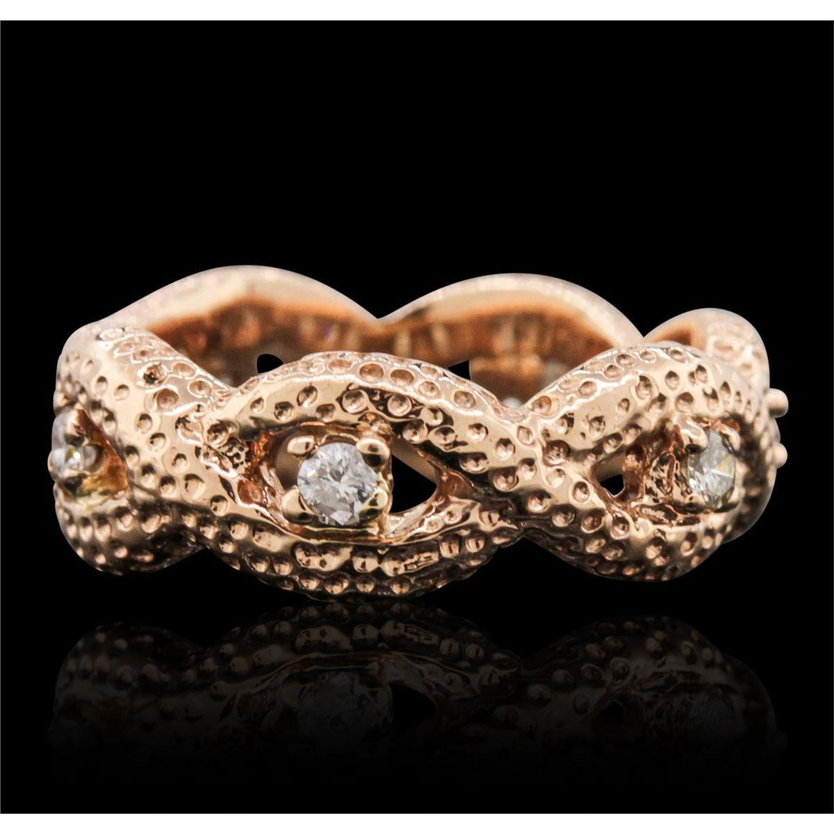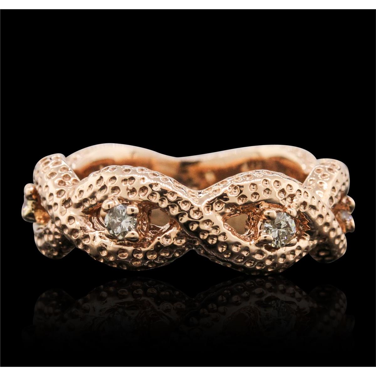 One Ring featuring: 14KT Rose Gold with a total weight of 6.70 grams, and Diamonds with a total weight of 0.25ctw.