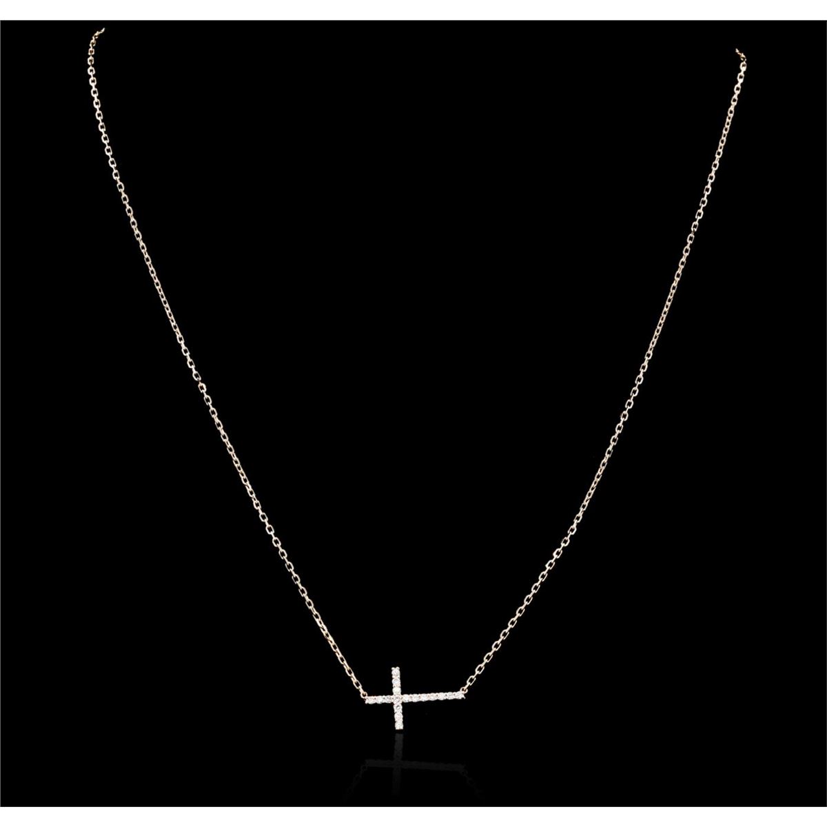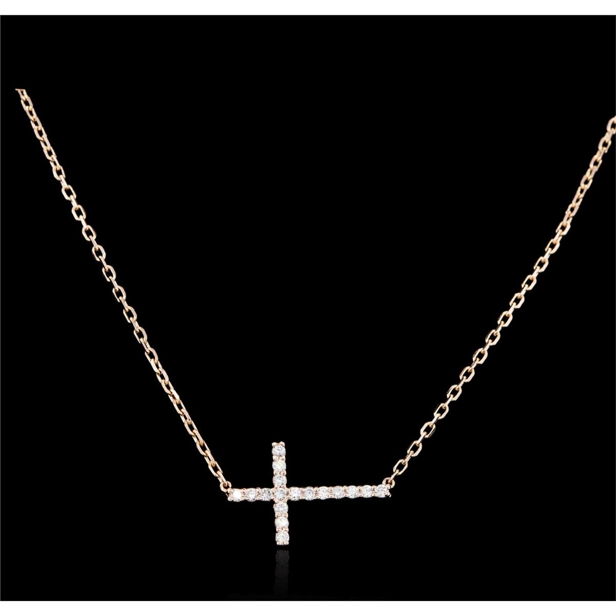 One cross necklace featuring: 14KT rose gold weighing 2.60 grams containing round diamonds with a total weight of 0.32cts.