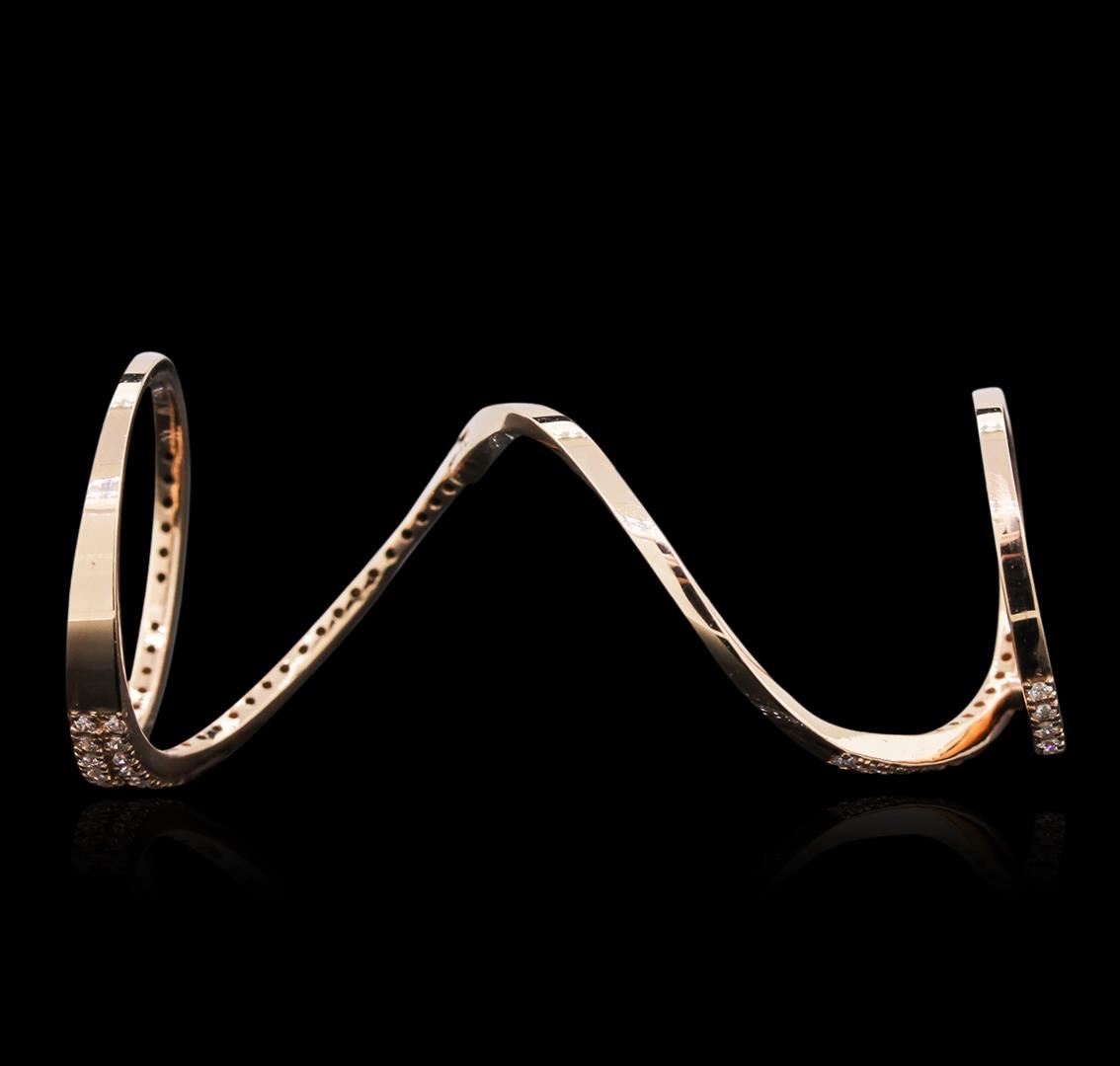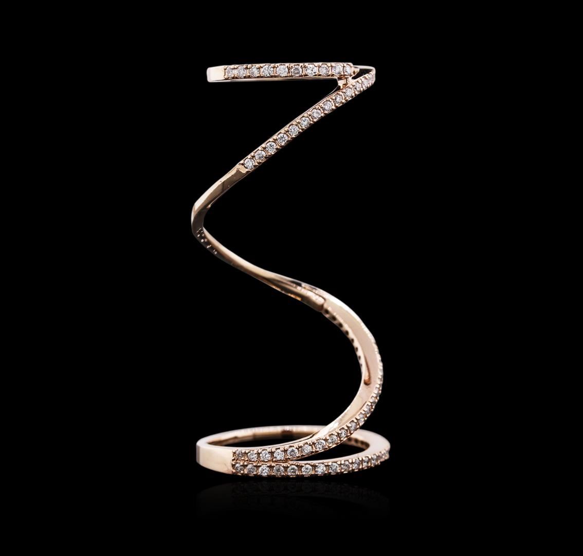 One electronically tested 14KT rose gold ladies cast diamond ring with a bright polish finish. Identified with markings of "K14". Condition is new. Containing: Seventy-Five prong set round brilliant cut diamonds, measuring 1.00 - 1.00 x 0.60mm (depth est.) approximate total weight of 75 Stones = 0.44ct. Clarity: SI-2 to I-2. Color: I - J, Cut is Good. Diamonds are graded in the mounting, unless otherwise stated. Total Weight of Diamonds 0.44ct. Total Weight of Ring 4.60 grams. GGL Appraised at $1,730.00.