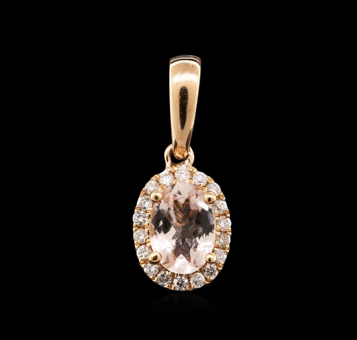 One pendant featuring: 14KT rose gold weighing 1.24 grams containing one morganite center stone with a total weight of 0.66ct and 18 round diamonds with a total weight of 0.11ct.