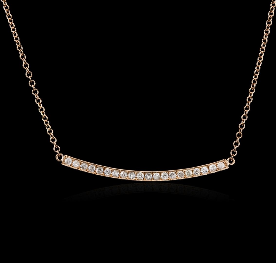 One necklace featuring: 14KT rose gold weighing 4.90 grams containing pave set round cut diamonds with a total weight of 0.84cts.