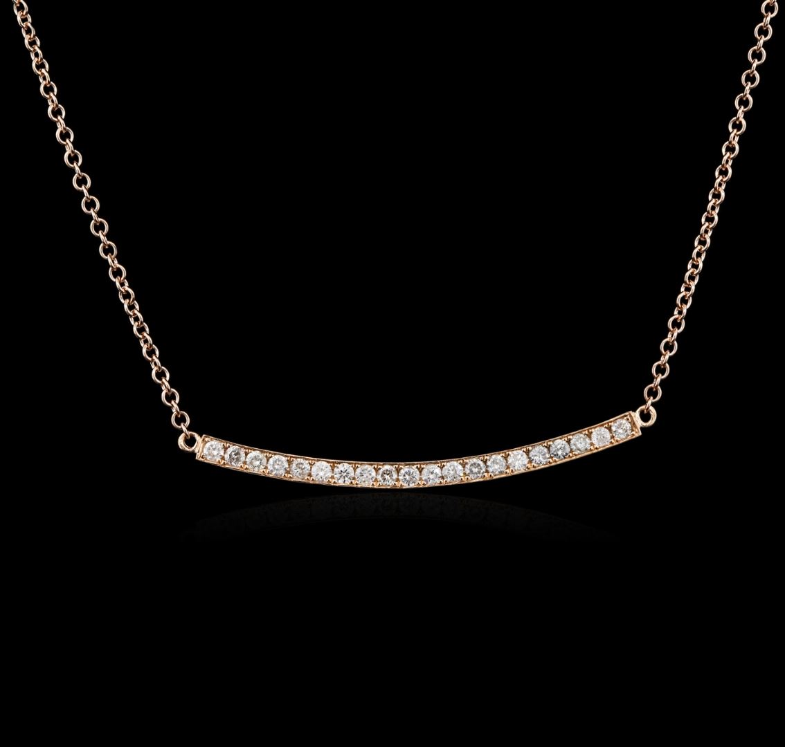 One necklace featuring: 14KT rose gold weighing 4.70 grams containing pave set round cut diamonds with a total weight of 0.84cts.