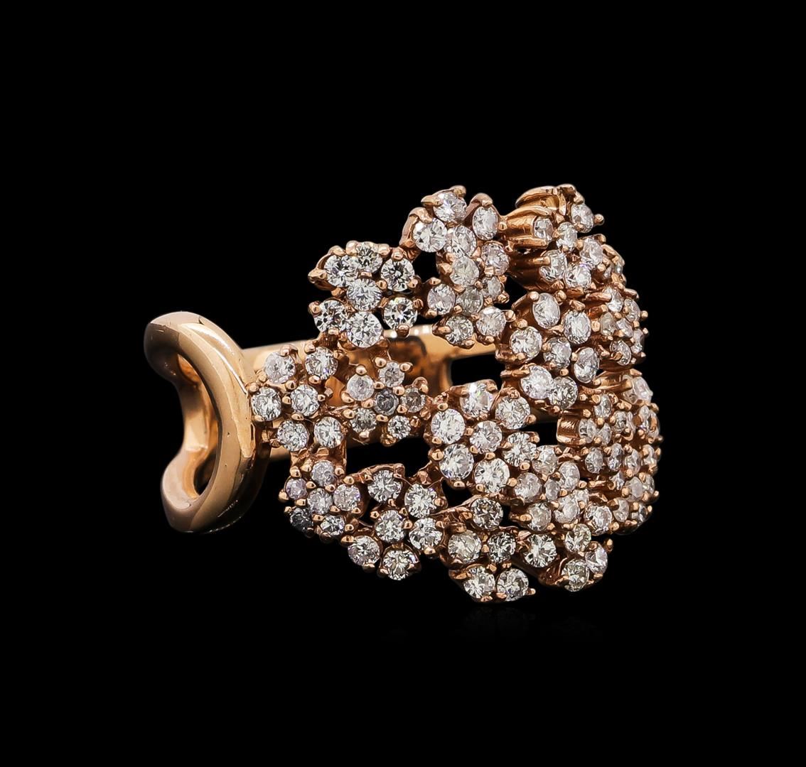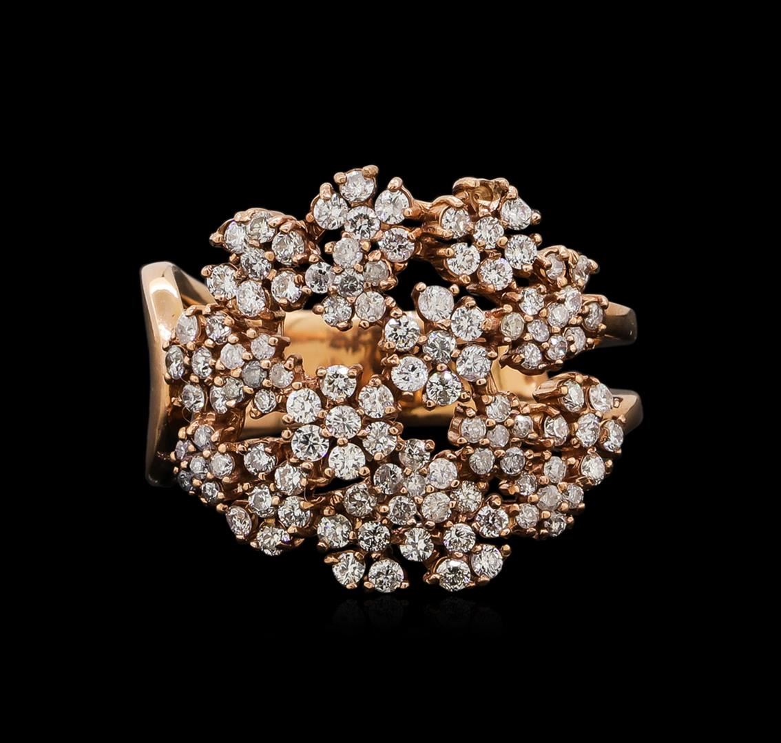One electronically tested 14KT rose gold ladies combination cast & assembled diamond ring with a bright polish finish. Identified with markings of "585". Condition is new. Containing: One Hundred Eight prong set round brilliant cut diamonds, measuring 1.30 - 1.30 x 0.78mm (depth est.) approximate total weight of 108 Stones = 0.86ct. Clarity: SI-2 to I-1. Color: I - J, Cut is Good. All diamonds are graded in the mounting, unless otherwise stated. Total Weight of Diamonds 0.86ct. Total Weight of Ring 5.30 grams. GGL Appraised.