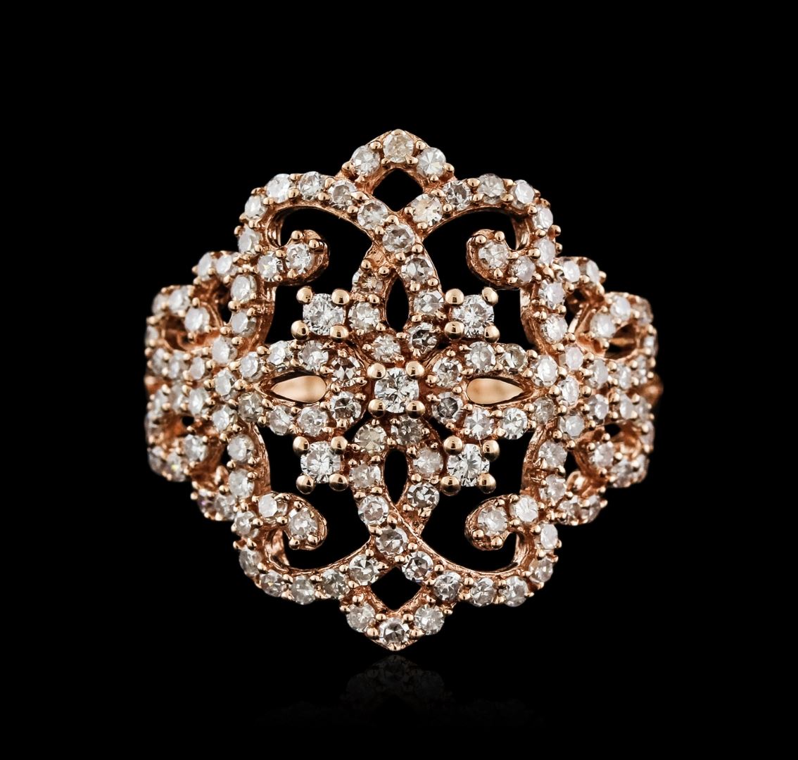 One ring featuring: 14KT rose gold weighing 3.80 grams containing diamonds with a total weight of 1.10ct.
