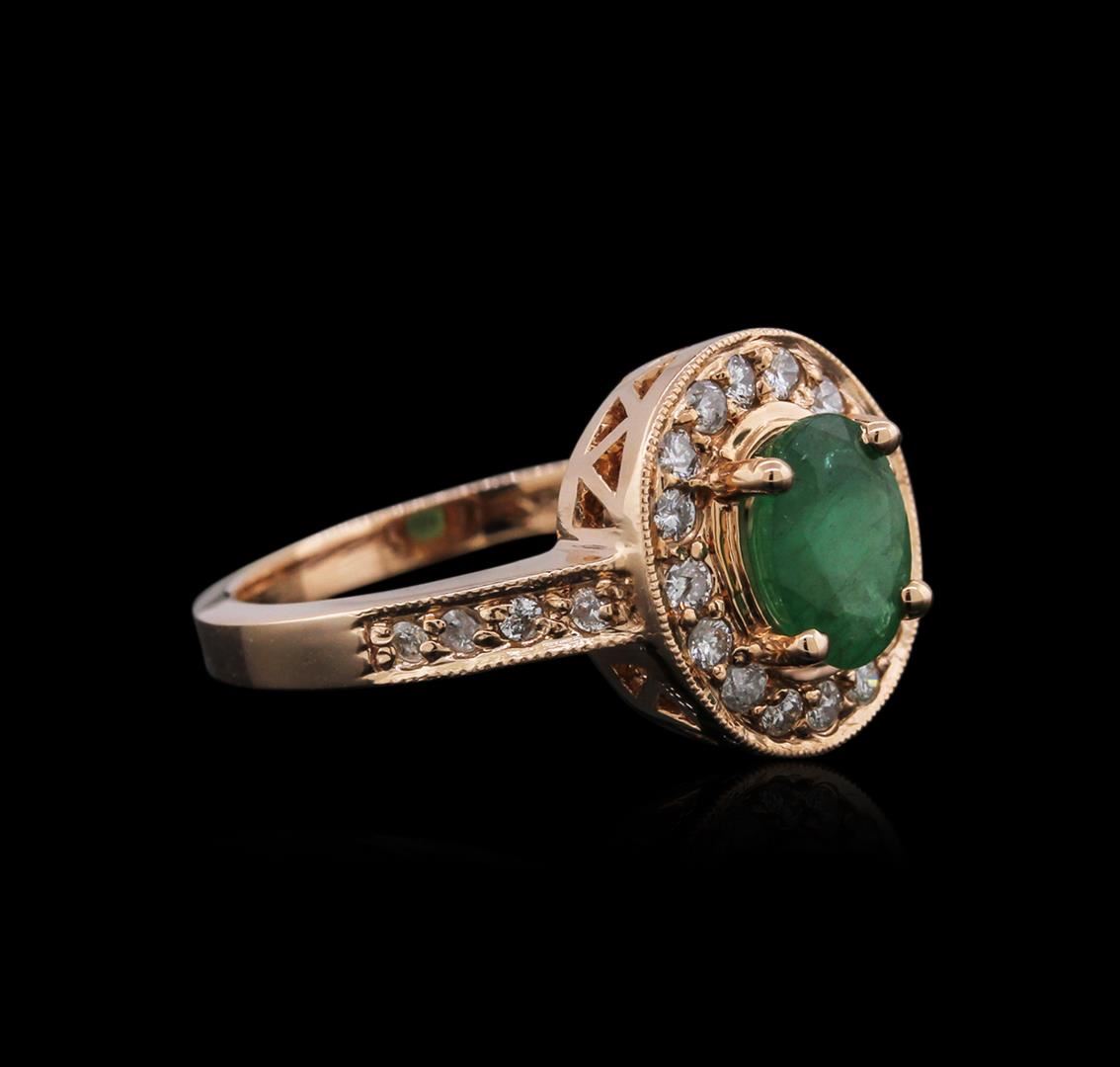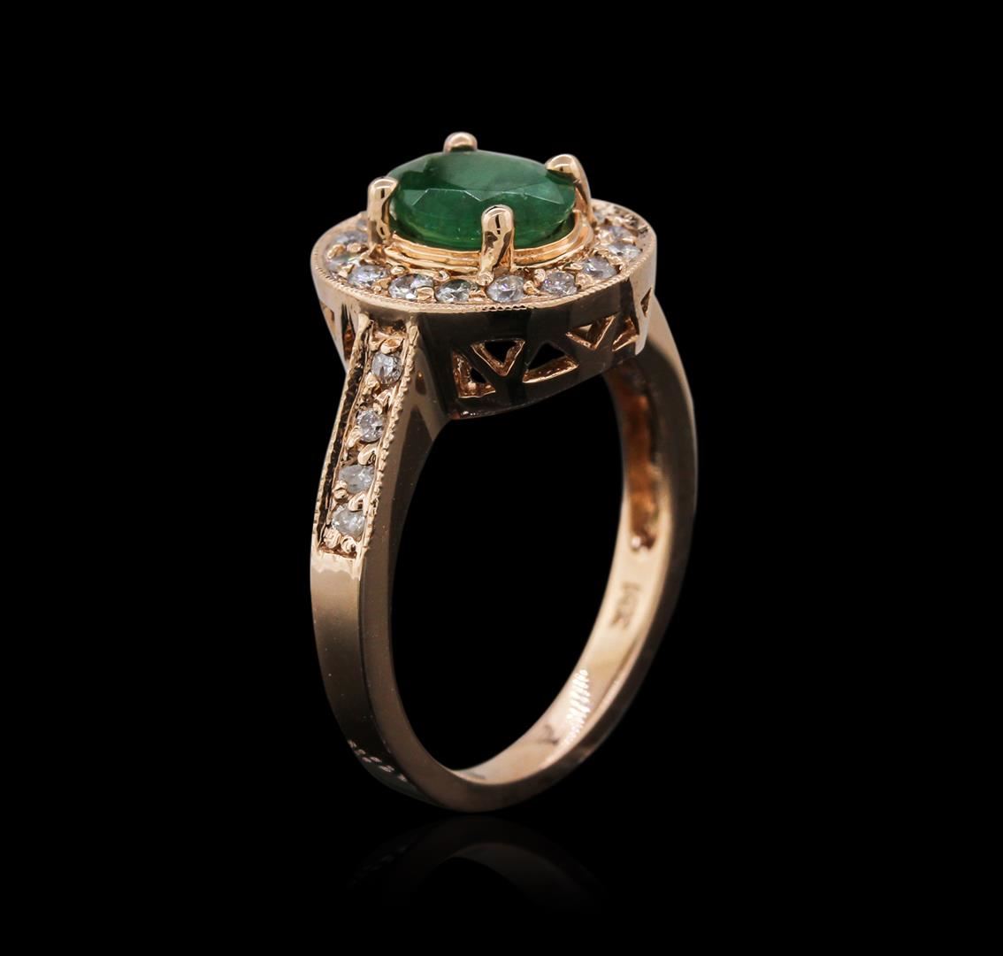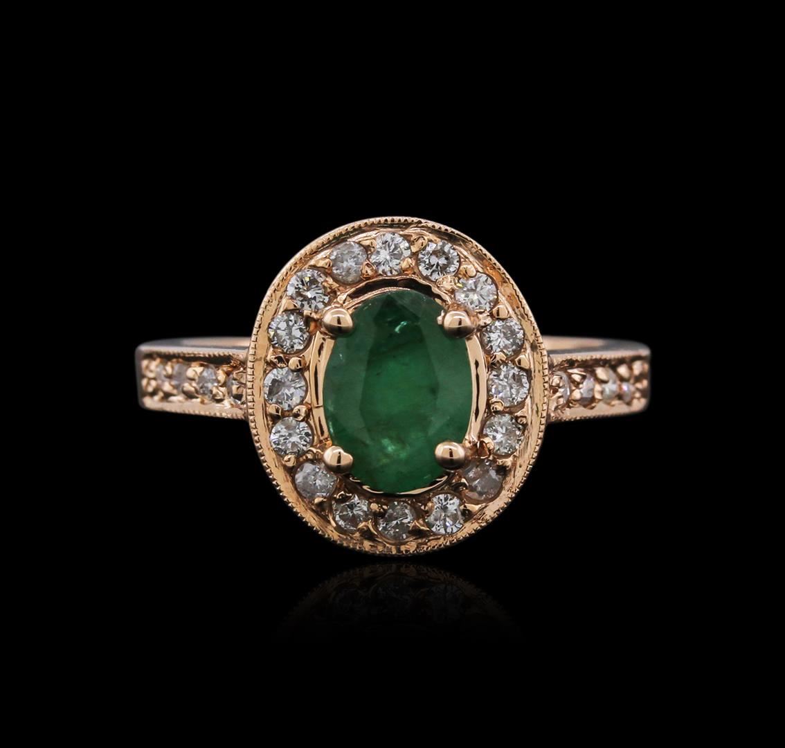 One ring featuring: 14KT rose gold weighing 5.68 grams containing one emerald center stone with a total weight of 1.12ct and 26 diamonds with a total weight of 0.50ct.