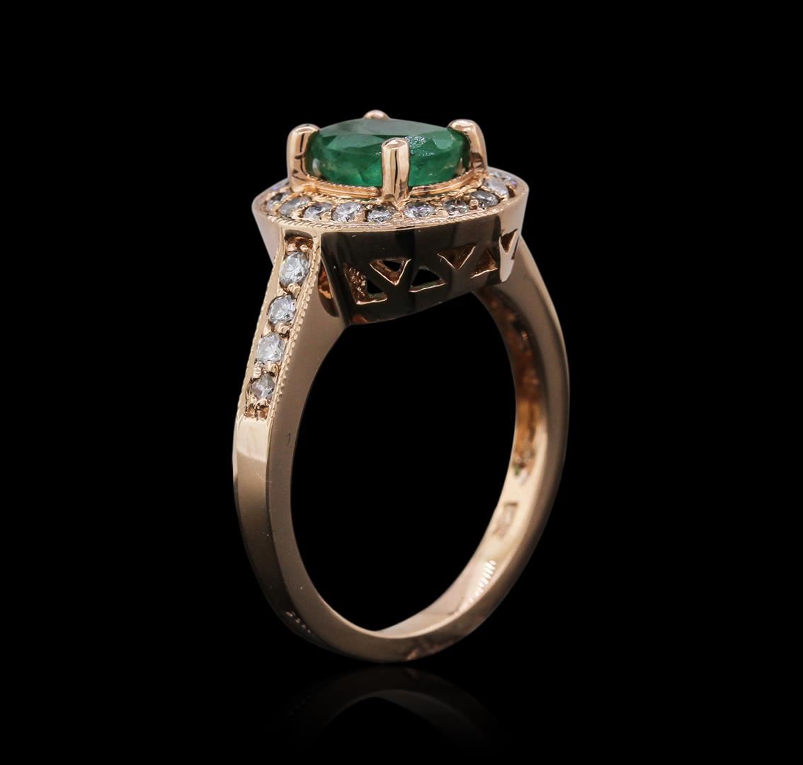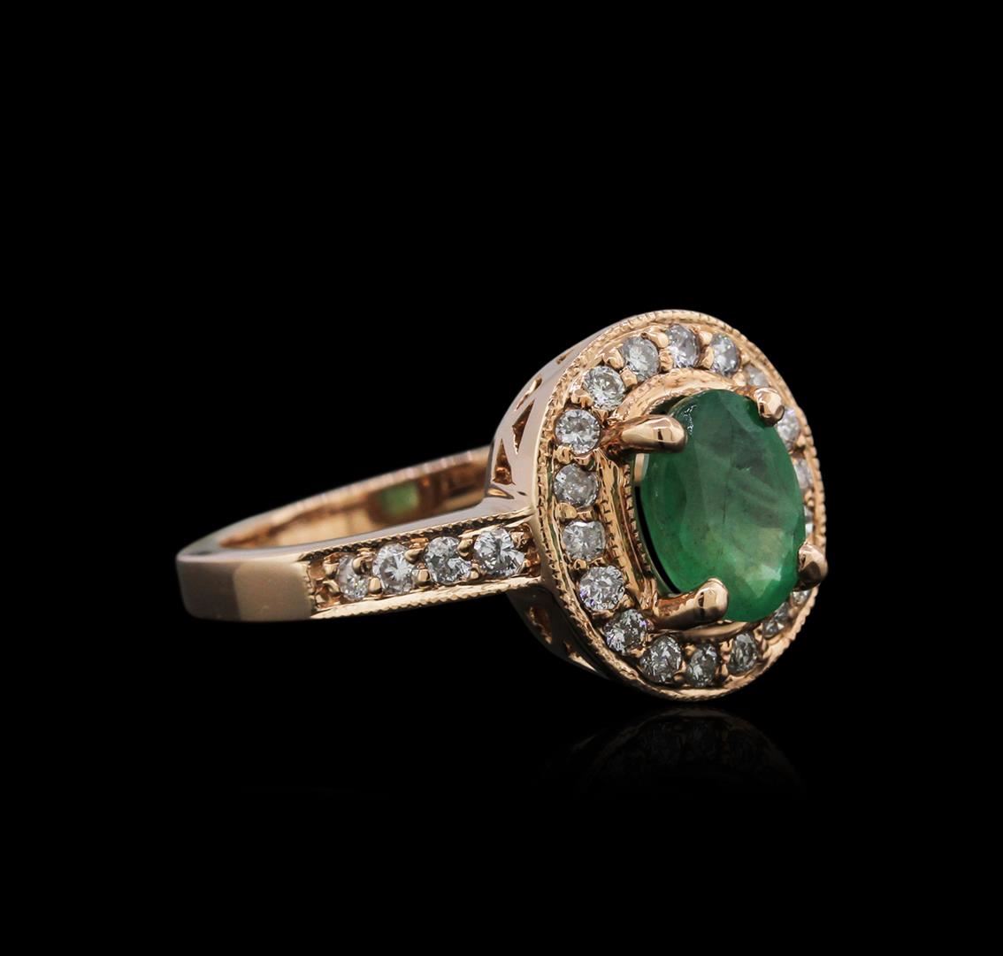 One ring featuring: 14KT rose gold weighing 5.80 grams containing one emerald center stone with a total weight of 1.34ct and 26 diamonds with a total weight of 0.48ct.