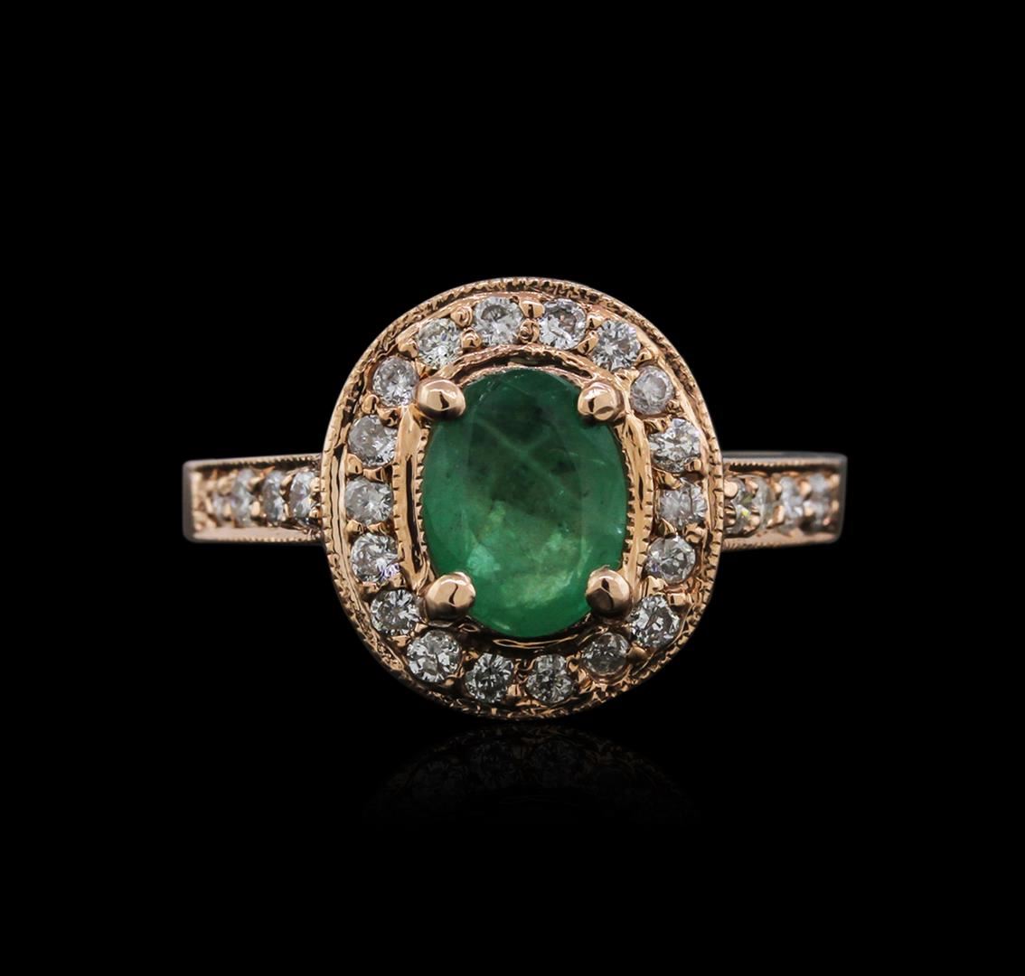 One ring featuring: 14KT rose gold weighing 5.80 grams containing one emerald center stone with a total weight of 1.34ct and 26 diamonds with a total weight of 0.48ct.
