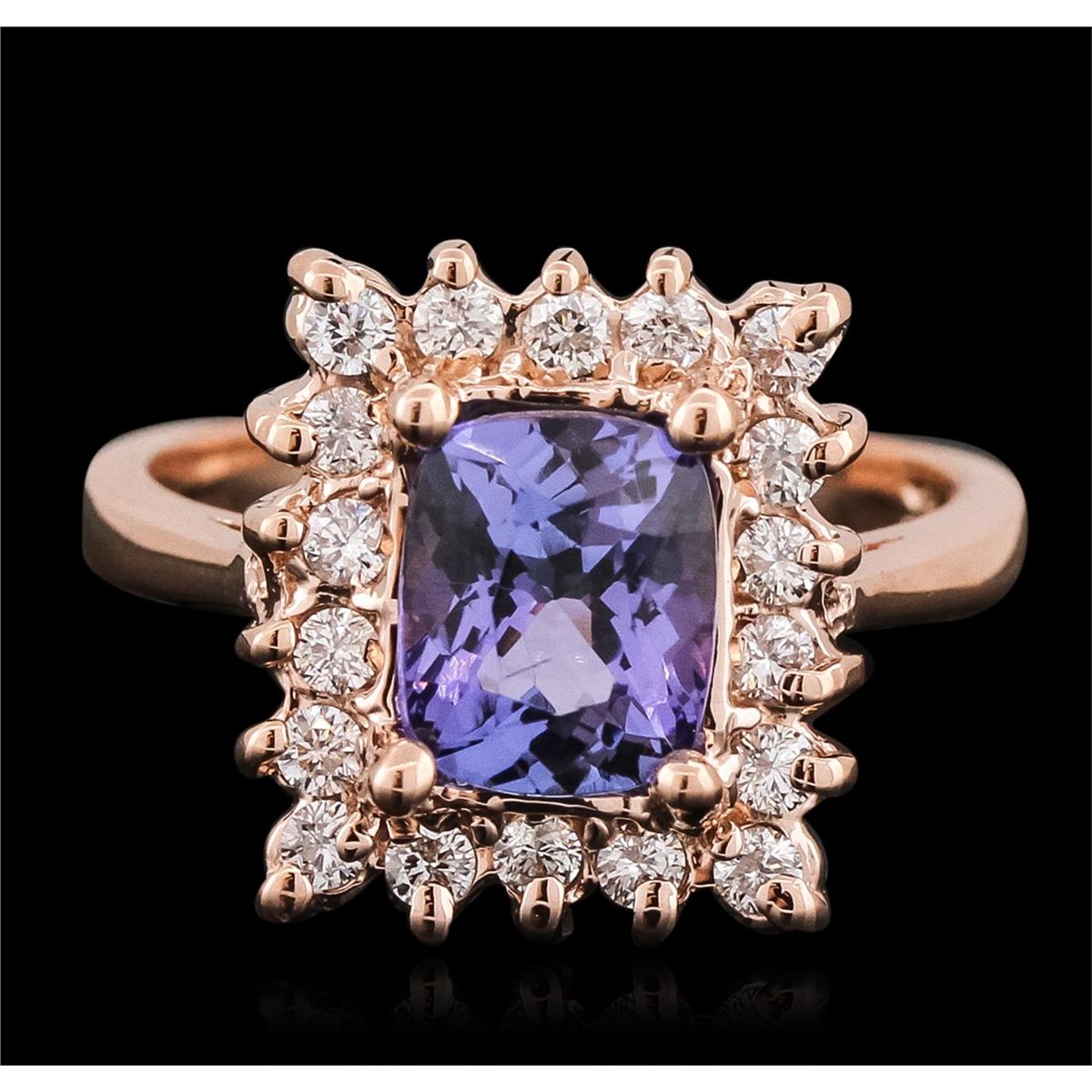 One ring featuring: 14KT rose gold with a total weight of 5.95 grams, tanzanite with a total weight of 1.56ct, and diamonds with a total weight of 0.40ctw.