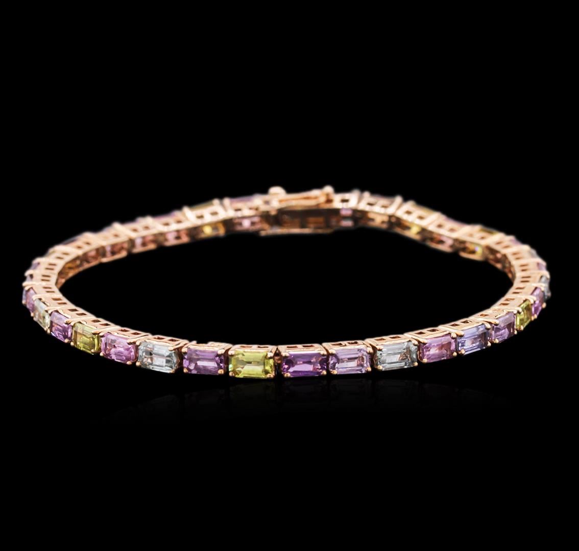 One bracelet featuring: 14KT rose gold weighing 10.97 grams containing 35 fancy multicolored sapphires with a total weight of 12.02ct.