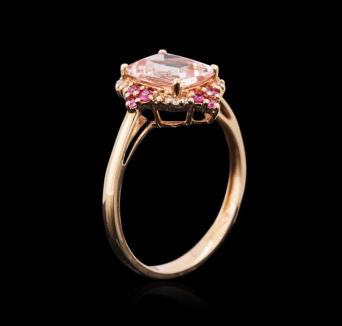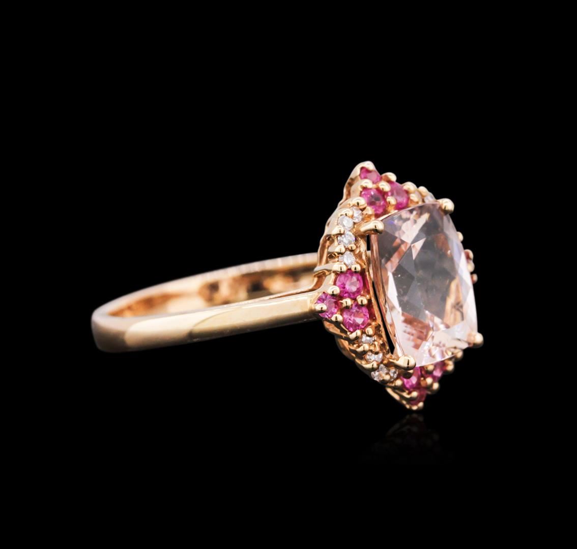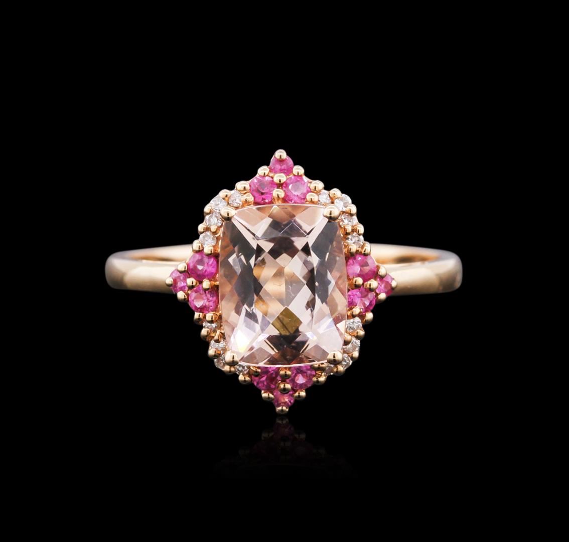 One ring featuring: 14KT rose gold weighing 2.23 grams containing one morganite center stone with a total weight of 2.03ct, 12 pink sapphires with a total weight of 0.21ct and 16 round diamonds with a total weight of 0.06ct.