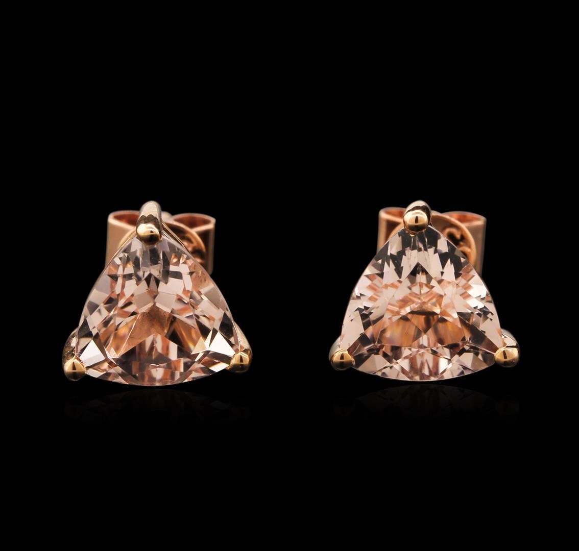 One pair of earrings featuring: 14KT rose gold weighing 0.97 grams containing two morganites with a total weight of 2.28ct.