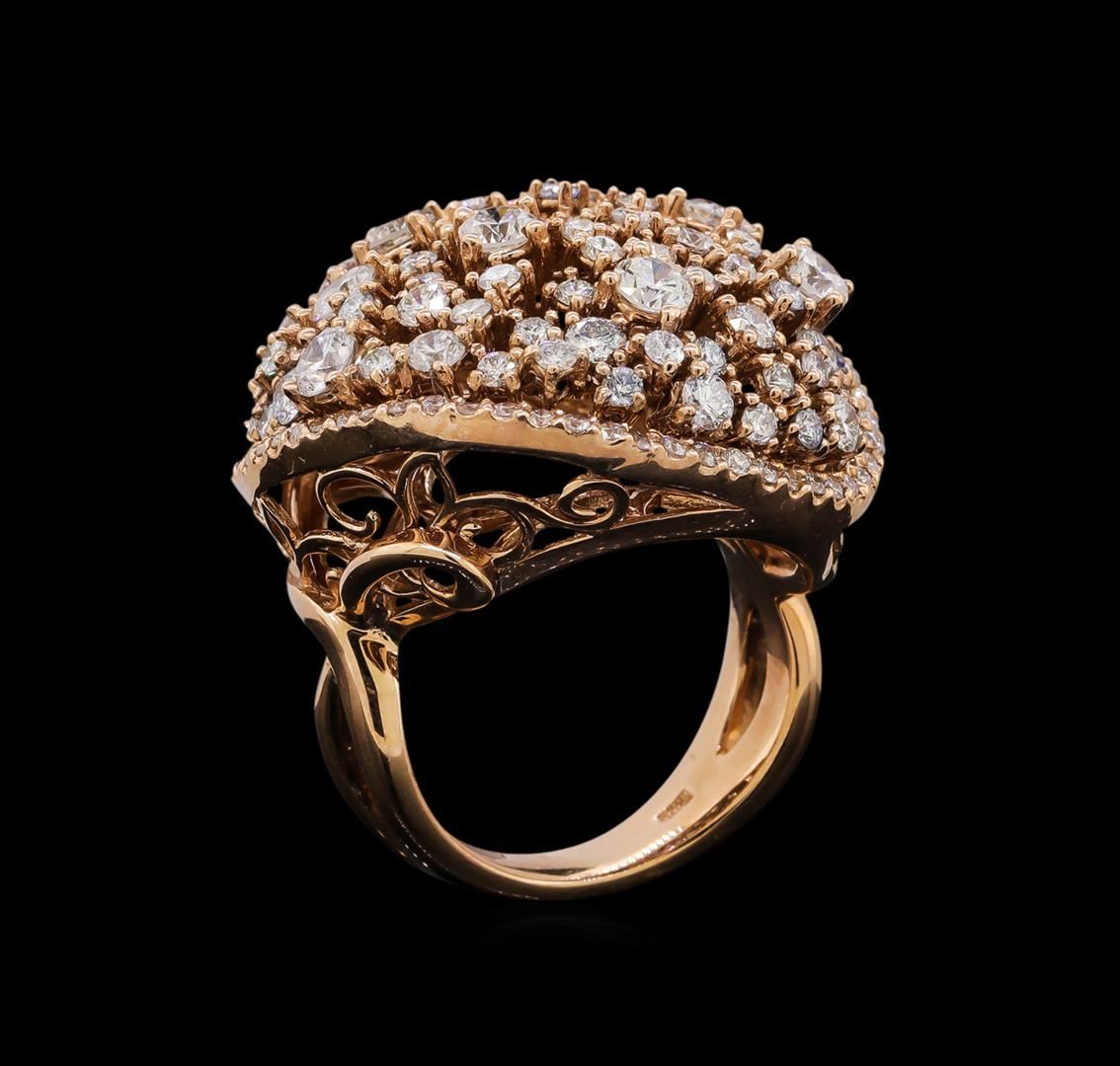 One electronically tested 14KT rose gold ladies cast diamond ring with a bright polish finish. Identified with markings of "585". Condition is new. Containing: Seven prong set round brilliant cut diamonds, measuring 3.20 - 3.20 x 1.92mm (depth est.) approximate total weight of 7 Stones = 0.84ct. Clarity: SI-1 to SI-2. Color: I - J, Cut is Good. One Hundred Twenty-Three prong set round brilliant cut diamonds, measuring 2.10 - 1.30 x 1.02mm (depth est.) approximate total weight of 123 Stones = 1.50ct. Clarity: SI-1 to I-1. Color: H - I, Cut is Good. All diamonds are graded in the mounting, unless otherwise stated. Total Weight of Diamonds 2.34ct. Total Weight of Ring 14.50 grams. GGL Appraised at $8,855.00.