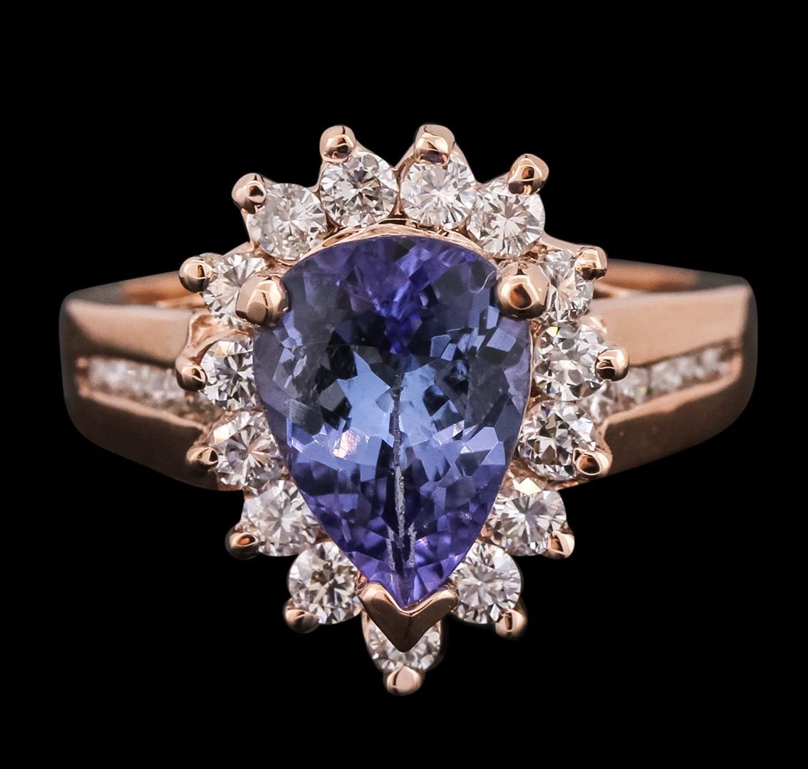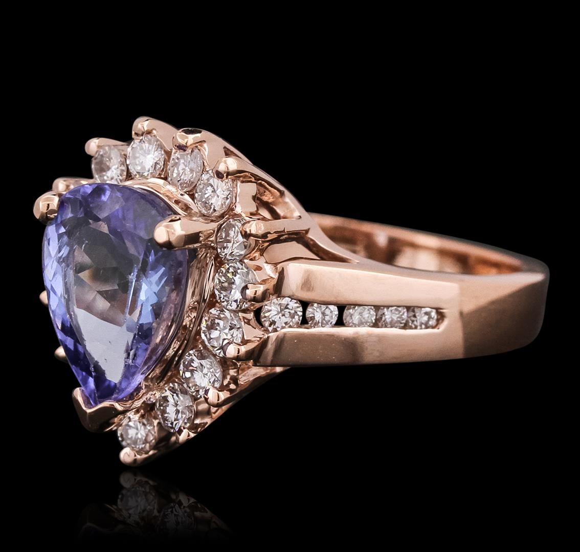 One ring featuring: 14KT rose gold with a total weight of 6.08 grams, tanzanite with a total weight of 2.40ct, and diamonds with a total weight of 0.73ctw.