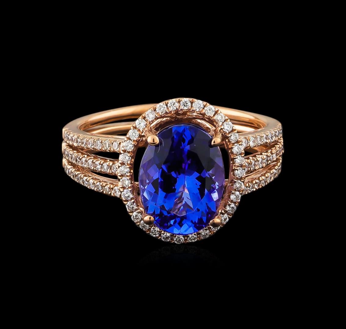 14KT Rose Gold 2.92 ctw Tanzanite and Diamond Ring
