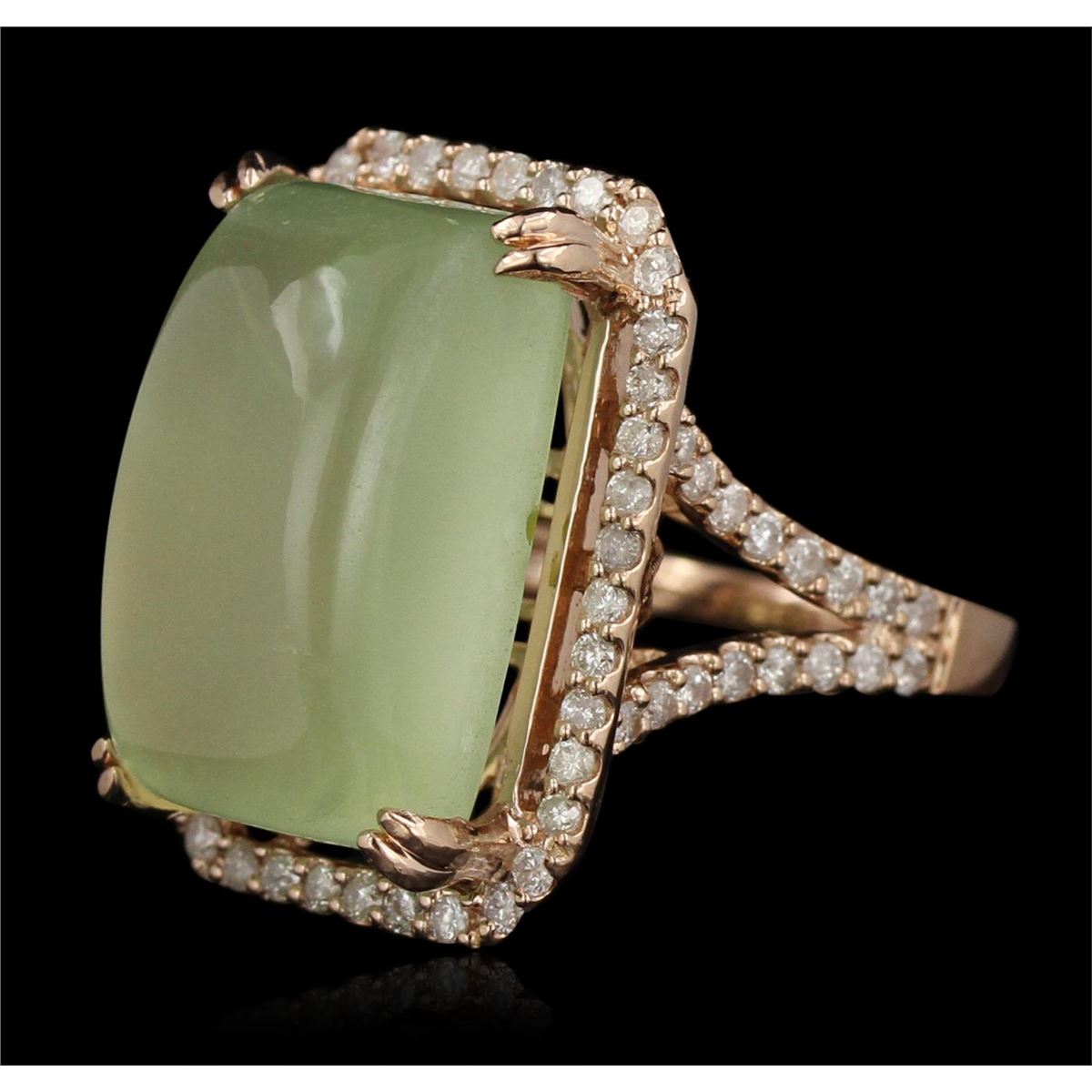 One electronically tested 14KT rose gold Ladies combination cast & assembled cocktail ring with a bright polish finish. Identified with markings of "14K". Condition is excellent. Containing: One prong set rectangular cabochon cut natural Paraiba tourmaline, measuring 21.10 x 11.80 x 10.00mm, approximate weight of 25.76ct., clarity is moderately included, light, very slightly grayish, very slightly bluish green color, (GIA vslbG 3/3). Colored gemstones are presumed to have been subjected to commonly used and possible undetectable color/clarity enhancement processes. Seventy-Two prong set round brilliant cut diamonds, measuring 1.80 - 1.80 x 1.08mm (depth est.) approximate total weight of 72 Stones = 1.09ct. Clarity of I-2 to I-3, Color of H - I. Total Weight of Colored Stones 25.76ct. Total Weight of Diamonds 1.09ct. Total Weight of Ring 13.80gm. GGL Appraised at $15,705.00.