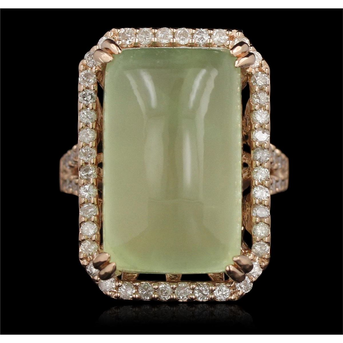 One electronically tested 14KT rose gold Ladies combination cast & assembled cocktail ring with a bright polish finish. Identified with markings of "14K". Condition is excellent. Containing: One prong set rectangular cabochon cut natural Paraiba tourmaline, measuring 21.10 x 11.80 x 10.00mm, approximate weight of 25.76ct., clarity is moderately included, light, very slightly grayish, very slightly bluish green color, (GIA vslbG 3/3). Colored gemstones are presumed to have been subjected to commonly used and possible undetectable color/clarity enhancement processes. Seventy-Two prong set round brilliant cut diamonds, measuring 1.80 - 1.80 x 1.08mm (depth est.) approximate total weight of 72 Stones = 1.09ct. Clarity of I-2 to I-3, Color of H - I. Total Weight of Colored Stones 25.76ct. Total Weight of Diamonds 1.09ct. Total Weight of Ring 13.80gm. GGL Appraised at $15,705.00.