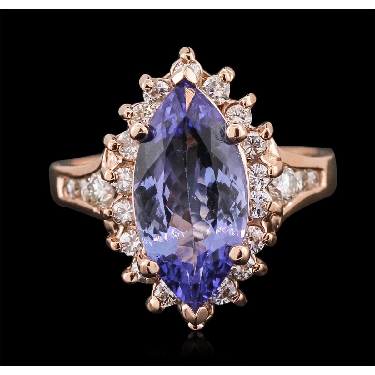 One ring featuring: 14KT rose gold with a total weight of 6.71 grams, tanzanite with a total weight of 3.06ct, and diamonds with a total weight of 0.64ctw.