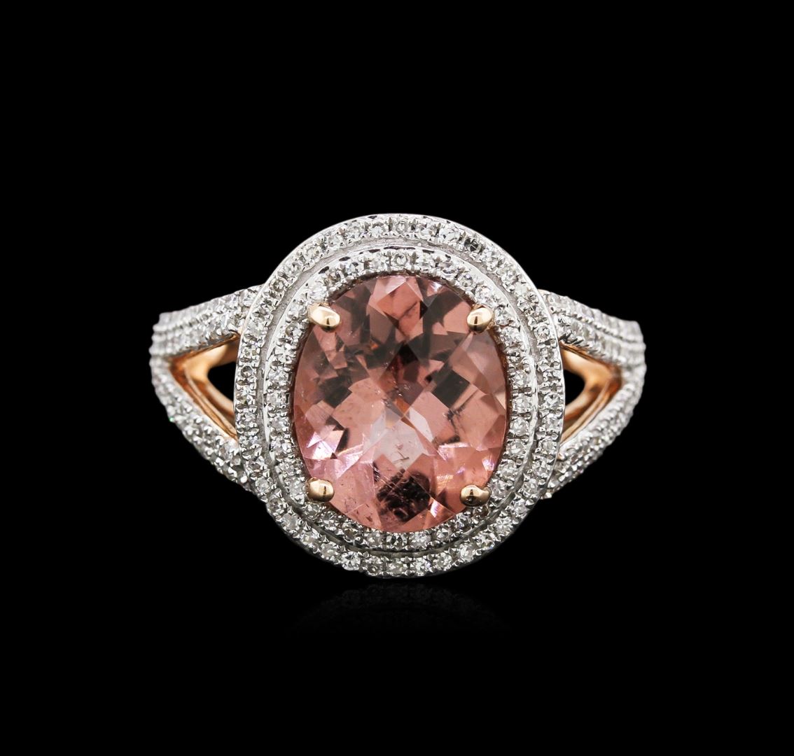 One ring featuring: 14KT rose gold weighing 6.00 grams containing one pink tourmaline center stone with a total weight of 3.62ct and 180 round diamonds with a total weight of 0.61ct.