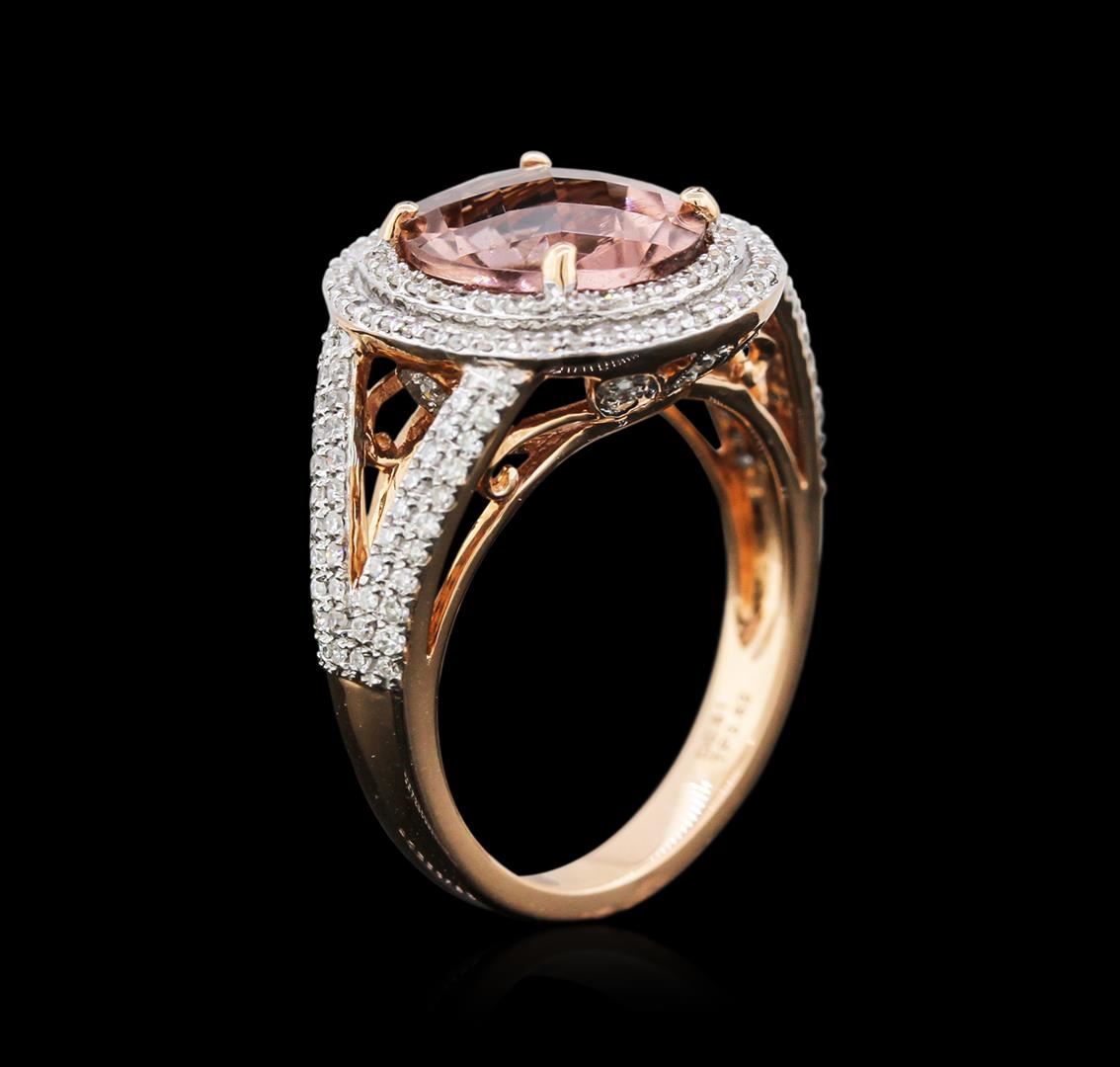 One ring featuring: 14KT rose gold weighing 6.00 grams containing one pink tourmaline center stone with a total weight of 3.62ct and 180 round diamonds with a total weight of 0.61ct.