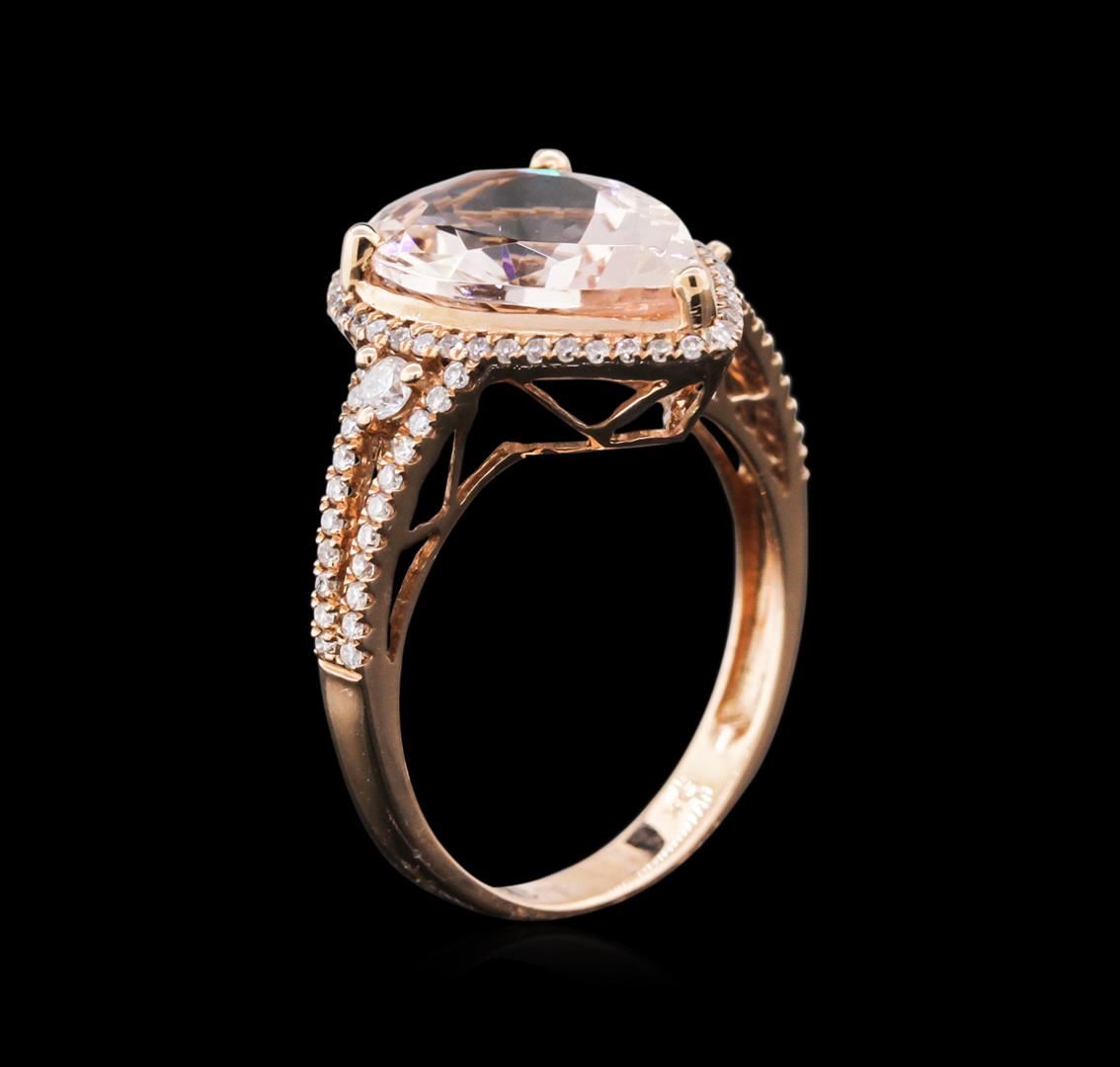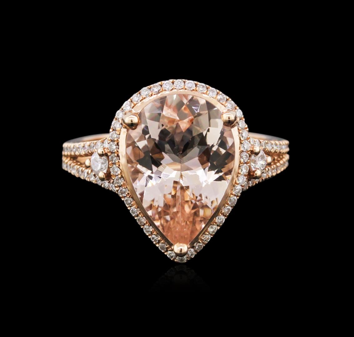 One ring featuring: 14KT rose gold weighing 2.90 grams containing one morganite center stone with a total weight of 3.97ct and 86 round diamonds with a total weight of 0.43ct.