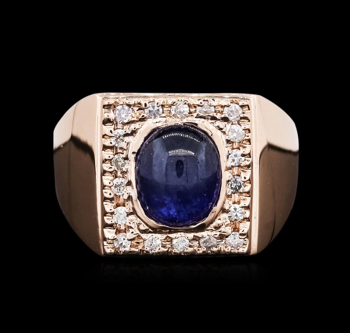 One ring featuring: 14KT rose gold weighing 12.97 grams containing one sapphire center stone with a total weight of 4.31ct and round diamonds with a total weight of 0.33cts.
