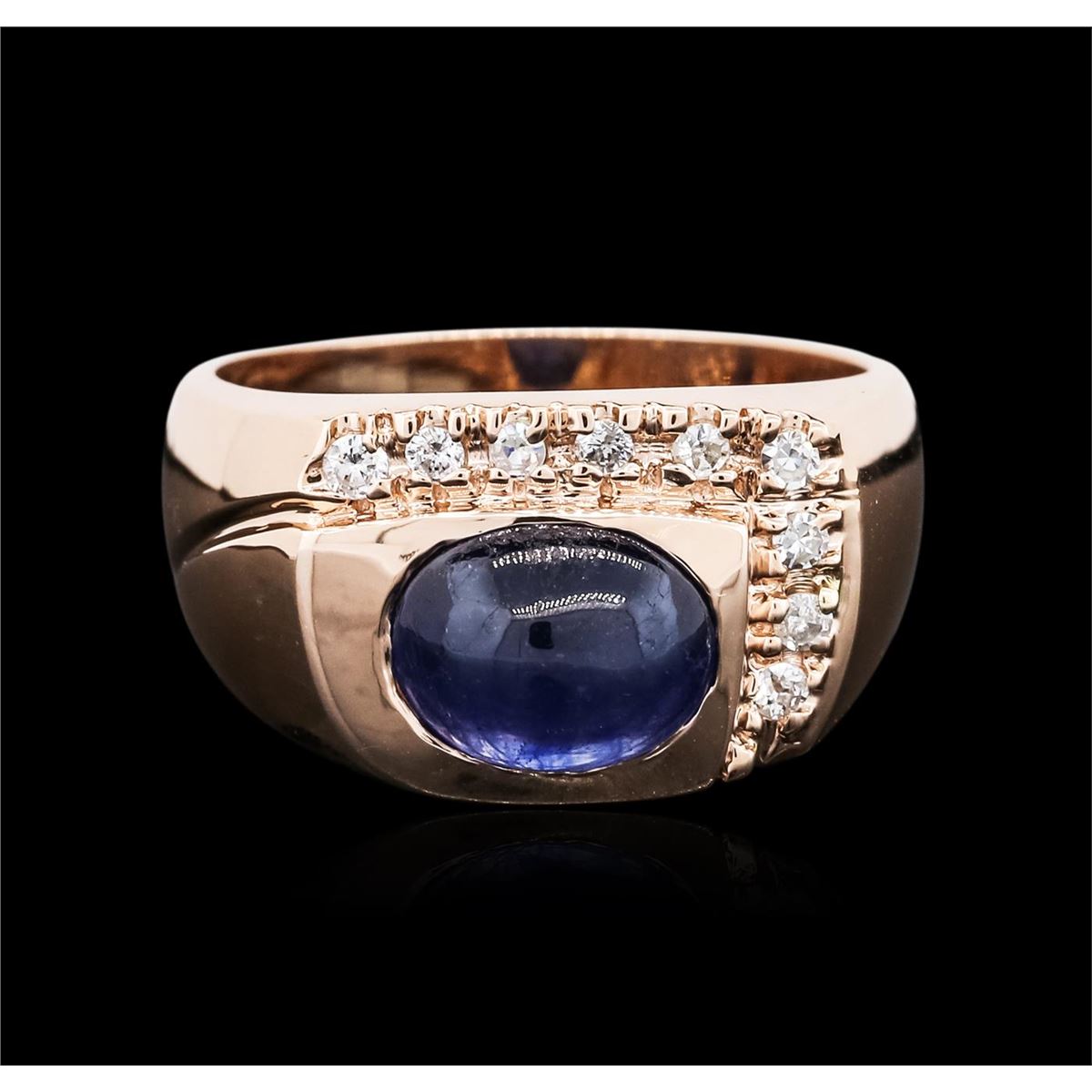One ring featuring: 14KT rose gold weighing 10.32 grams containing one sapphire center stone with a total weight of 4.33ct and round diamonds with a total weight of 0.18cts.