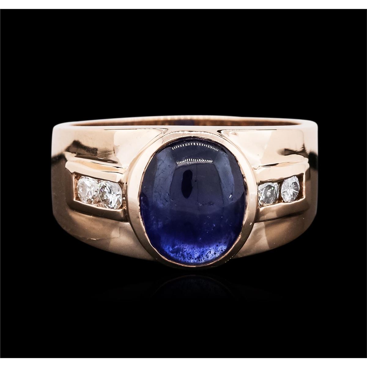 One ring featuring: 14KT rose gold weighing 10.82 grams containing one sapphire center stone with a total weight of 4.69ct and round diamonds with a total weight of 0.33cts.