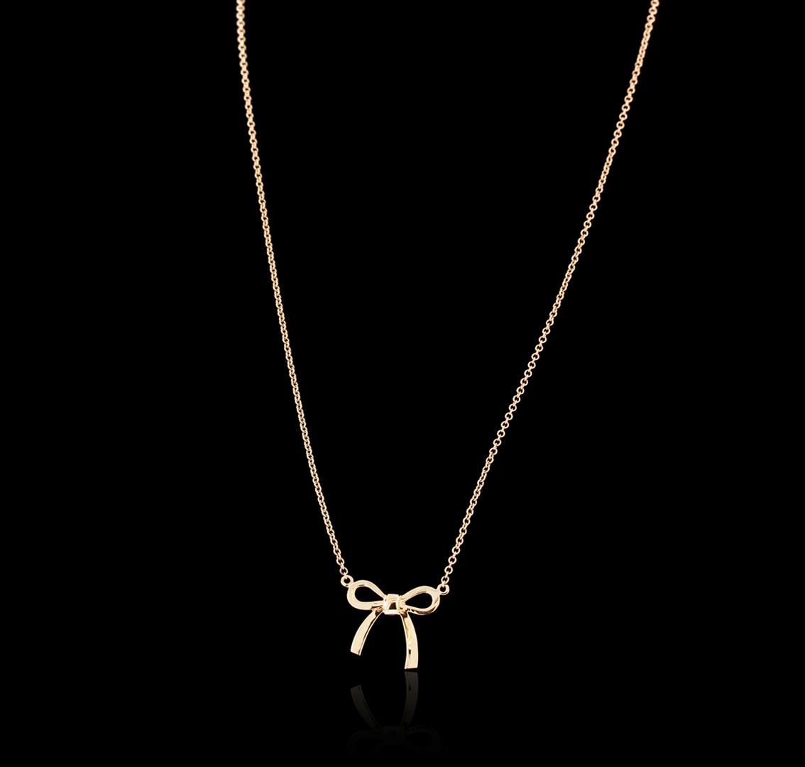One bow style necklace featuring: 14KT rose gold weighing 3.50 grams.