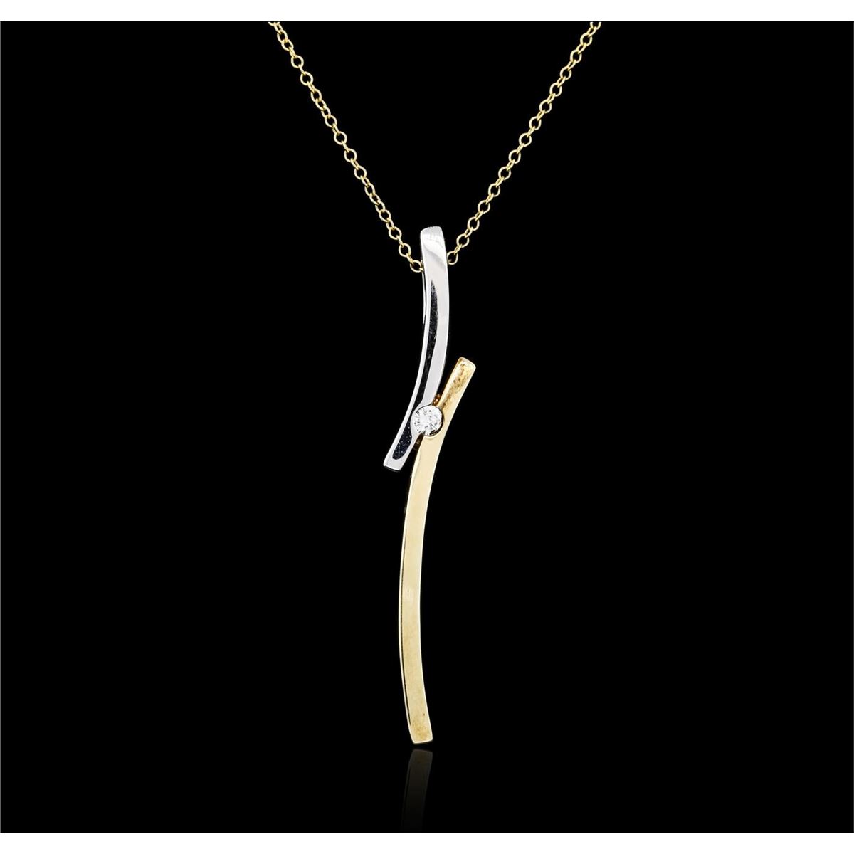 One pendant with chain featuring: 14KT yellow and white gold containing one round diamond with a total weight of 0.07ct.