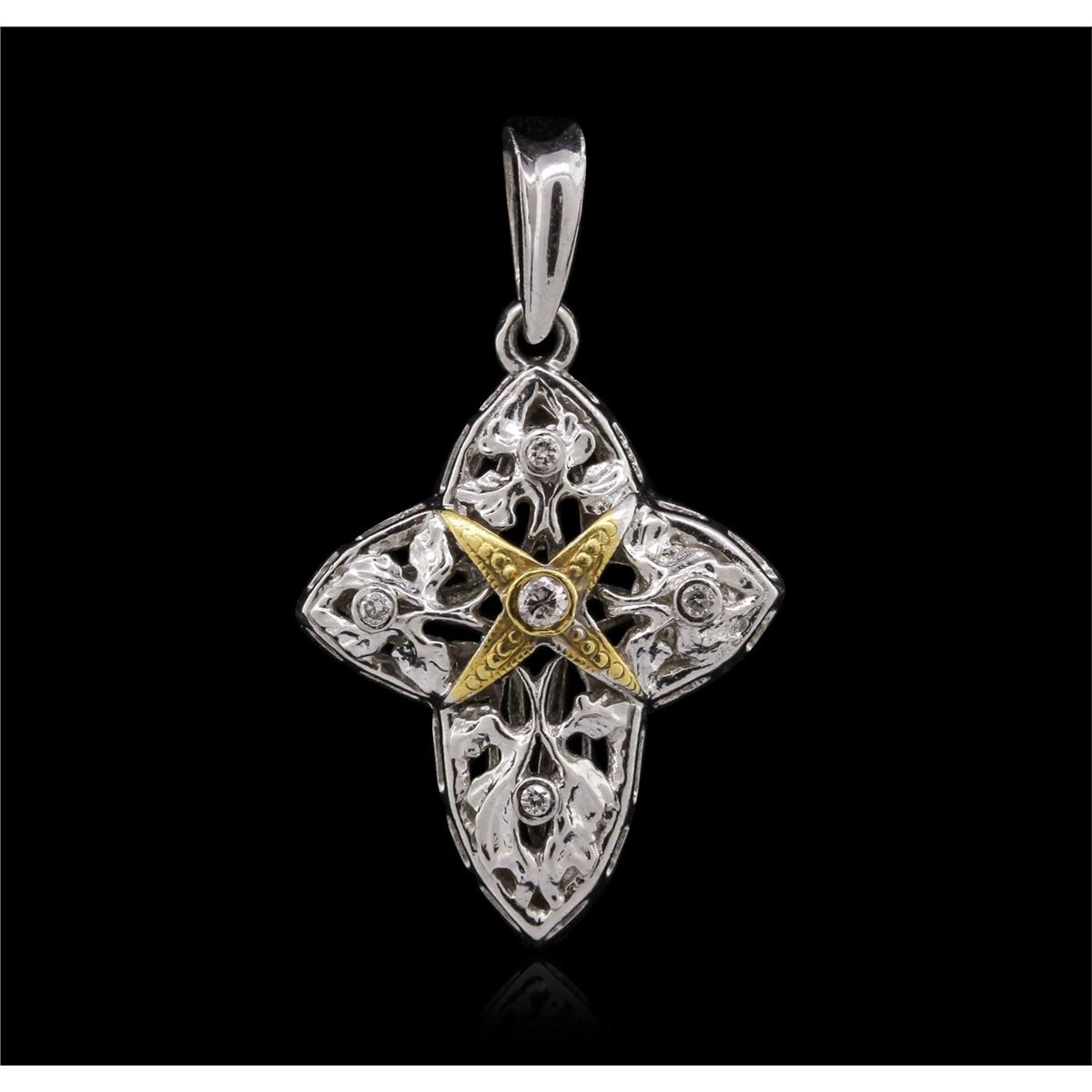 One pendant featuring: 14KT white and yellow gold weighing 5.60 grams containing five round diamonds with a total weight of 0.09ct.