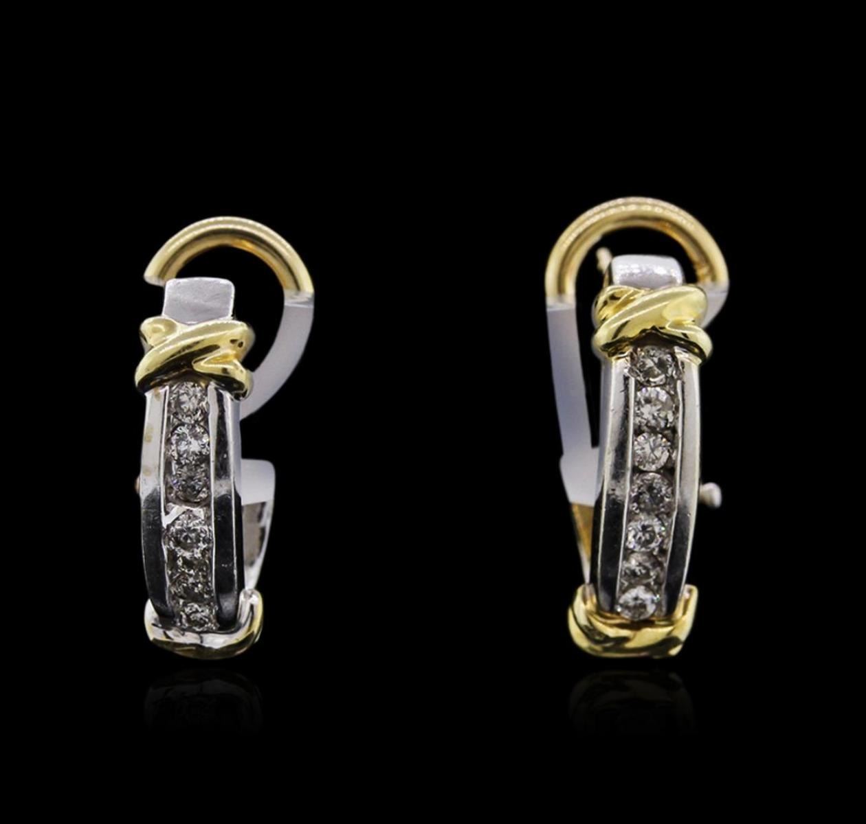 One pair of earrings featuring: 14KT white and yellow gold weighing 3.99 grams containing diamonds with a total weight of 0.22ct.