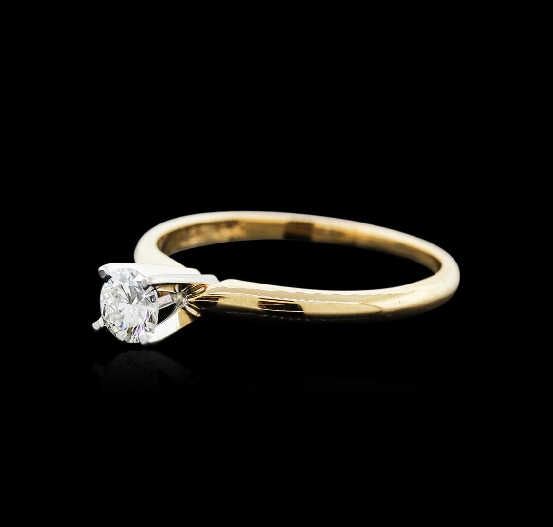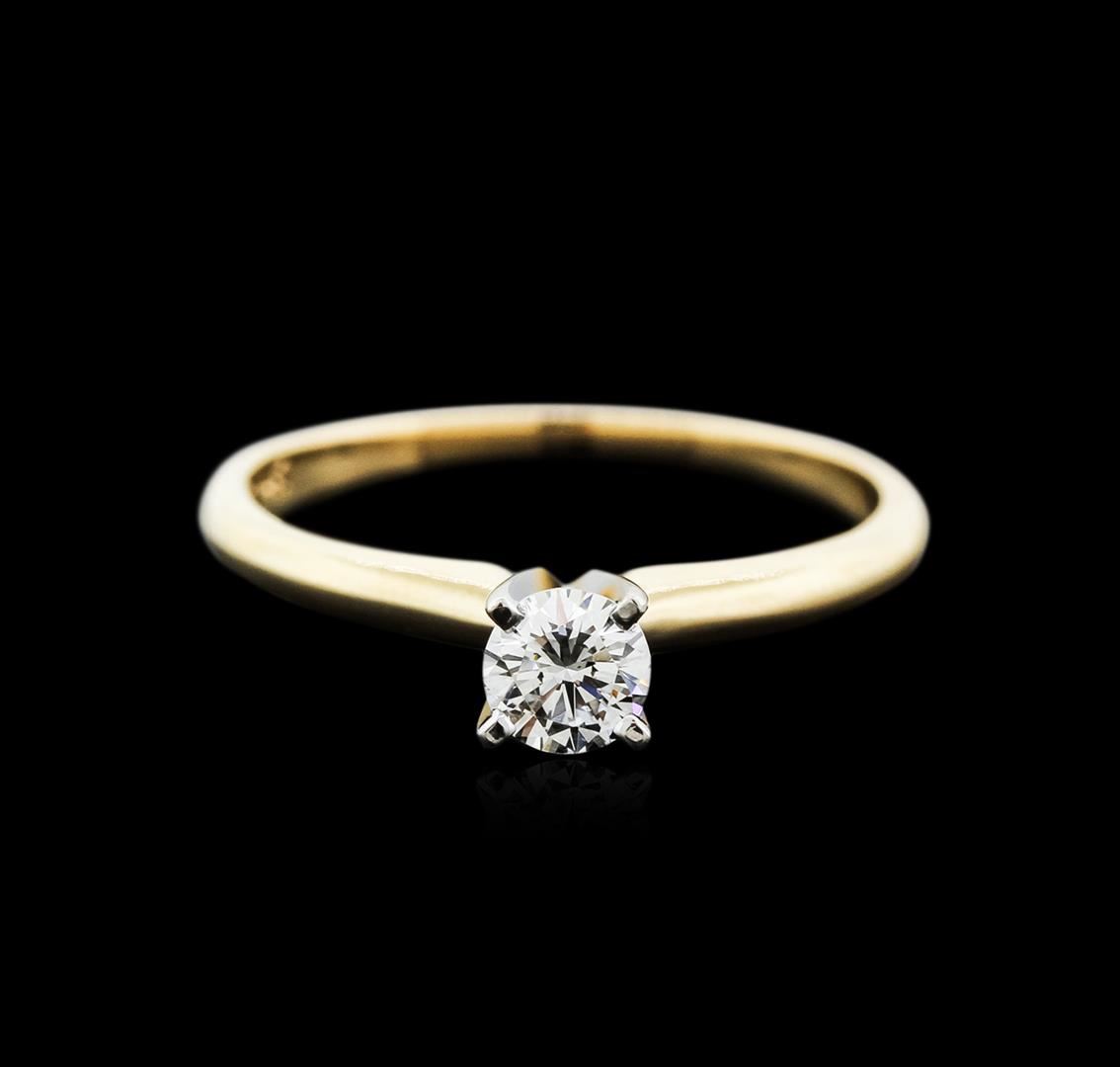 One solitaire ring featuring: 14KT yellow and white gold weighing 2.10 grams containing one diamond with a total weight of 0.30ct.